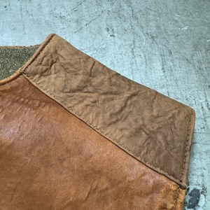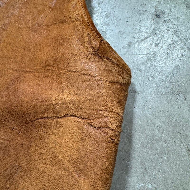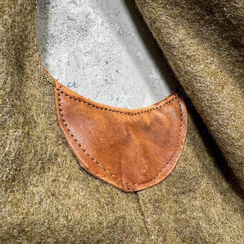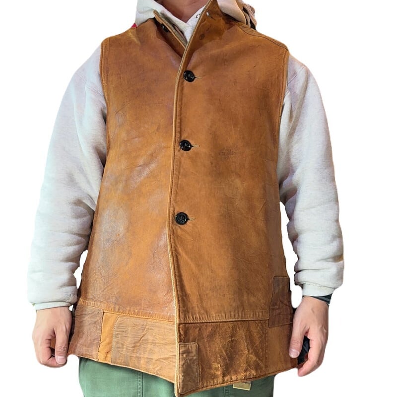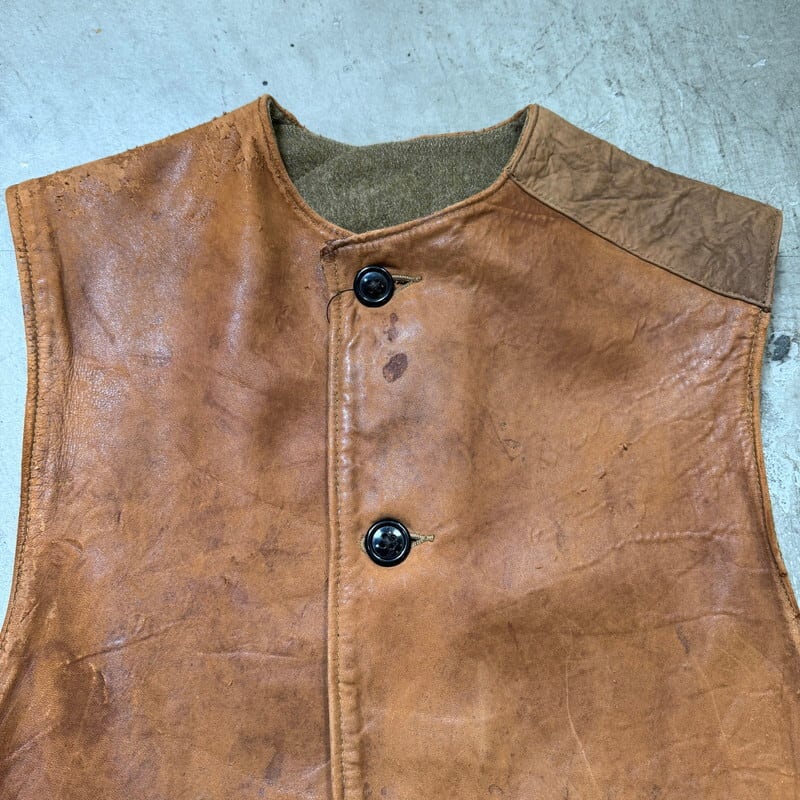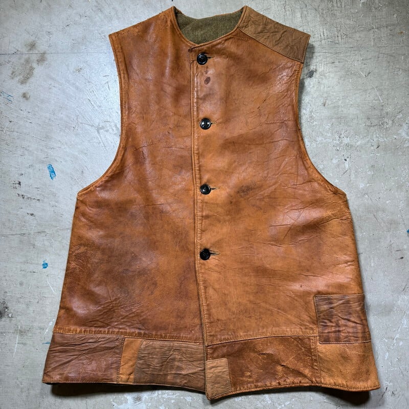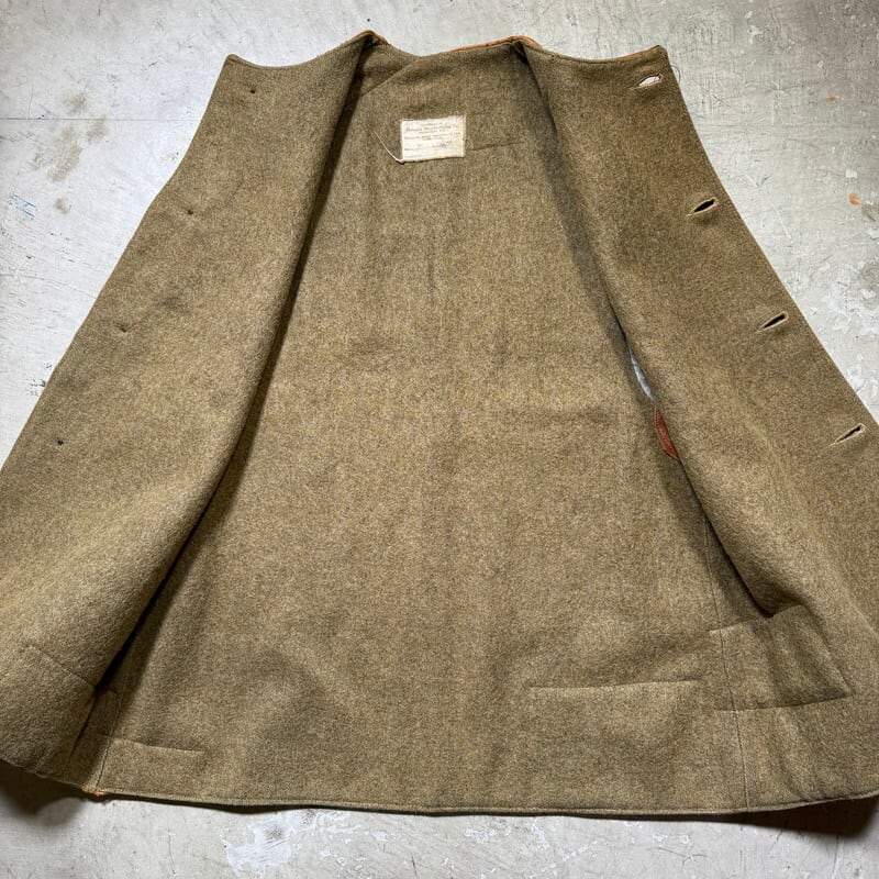 1910年代のU.S.ARMY ジャーキンベストです。大変希少な第一次世界大戦時のアイテムで、奇跡的にタグが残っております。コントラクターは1892年に創業したMonarch Manufacturing Co.、コントラクトは1918年9月26日。ご紹介するこちらは、1917年から1918年にA.E.F.(American Expeditionary Force、アメリカ外征軍)のみ支給されたジャーキンベストで、非常にしなやかなシープスキン?が使用されています。ライニングは無地のウールが使用されています。全体的に擦れや汚れ、細かなダメージがございます。肩や裾等ダメージが強い箇所はリペア屋さんにお願いして丁寧にお直ししていただきました。革の質感も合わせていただいたので、パッチワーク調になっていますが、バランスよくリペアしていただいております。サイズ表記は4で、42相当です。大きすぎないのでセーターやスウェットの上からも合わせやすいサイズです。100年以上前に作られたアイテムですが、やはりなんといっても注目すべきはタグの印字が読める状態で残っている事でしょう。タグだけでも非常に歴史的価値があるといえます。レザーはとてもしなやかですのでまだまだお使いいただけます。着用はもちろんですが、コレクションとしても申し分ないスーパーヴィンテージです。お探しだった方は是非この機会にいかがでしょうか。