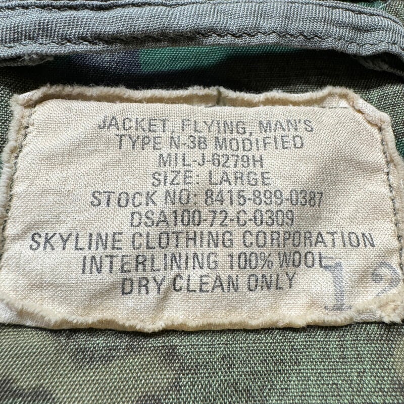 70's U.S.AIR FORCE JACKET FLYING MAN'S TYPE N-3B MODIFIED フライトジャケット モディファイド 裏地迷彩 ERDL グリーンリーフ MIL-J-6279H SKYLINE CLOTHING CO 米空軍 USAF Lサイズ 希少 ヴィンテージ BA-2468 RM2887H