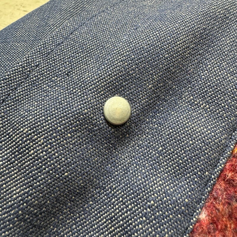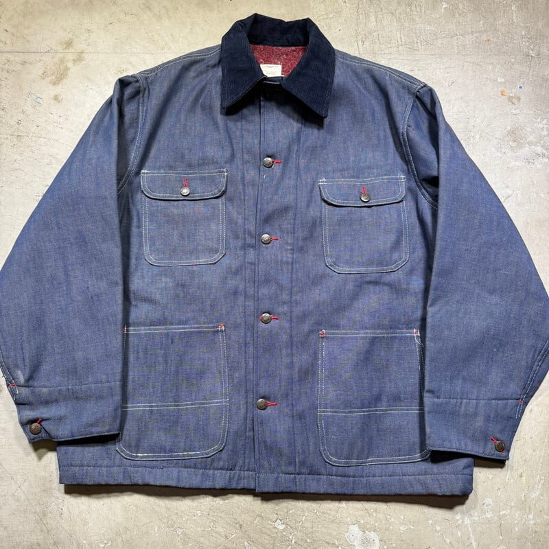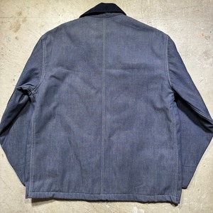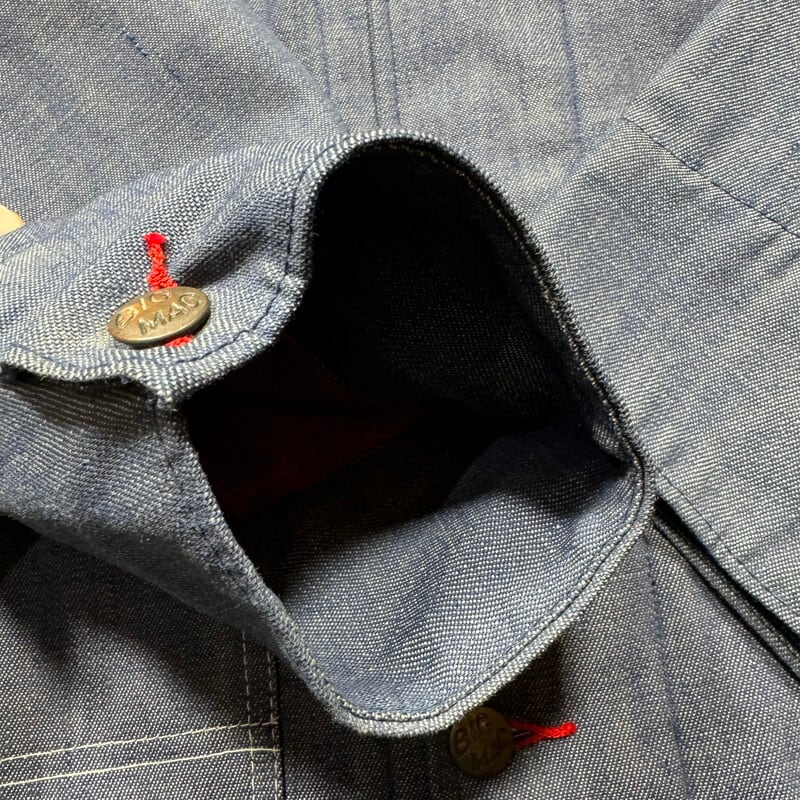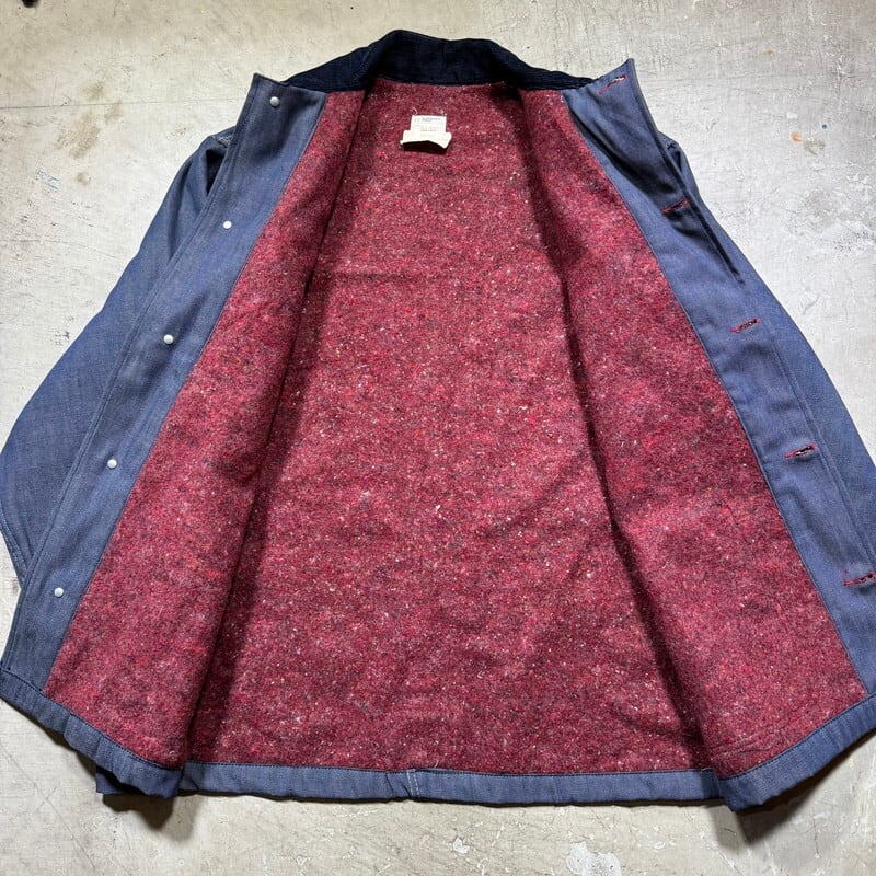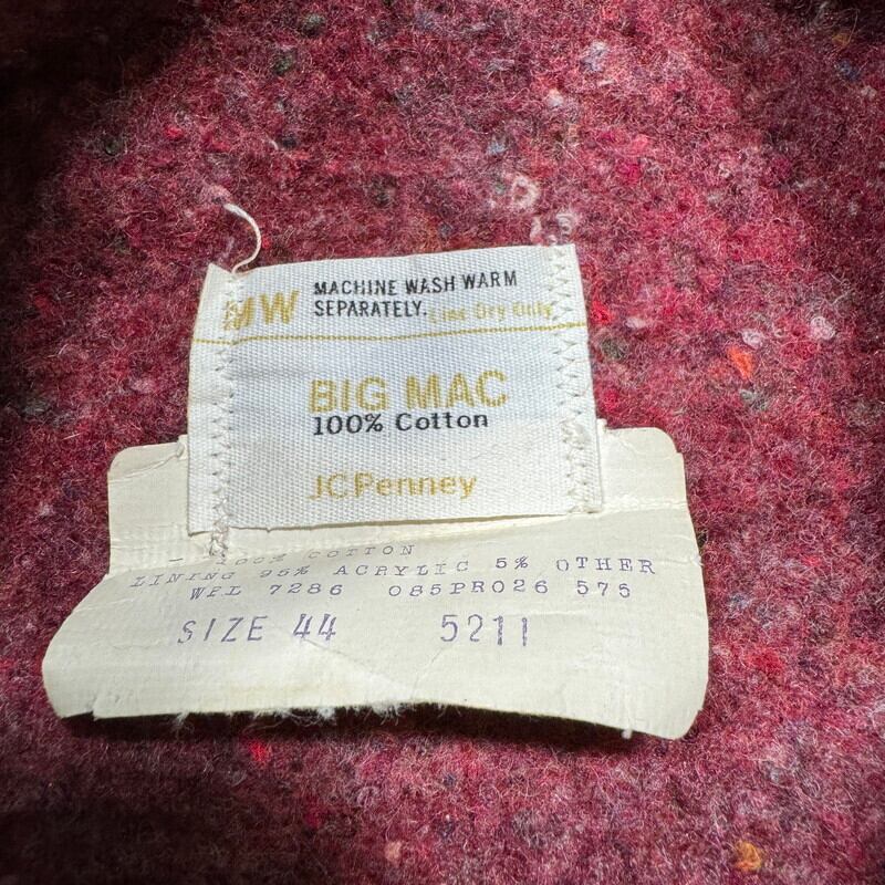 70年代頃のBIG MAC ブランケットライナーデニムカバーオールです。アメリカ3大ストアブランドとして有名なJCPennyのプライベートワークブランドです。ご紹介するこちらのアイテムは、バットダイデニムが使用された1着で、ブランケットライニングが使用されています。フラッシャーは付きませんが、水に通っていないデッドストックに限りなく近い個体です。長期保管時に付いたと思われる薄汚れはございますが、生地もしっかりと糊が残っております。サイズは44ですが、着丈が長いタイプではありませんので、とても着やすいサイズ感だと思います。ワークウェアとしては年代は浅いですが、ノンウォッシュの状態で見つかる事は非常に稀です。1から育てたい方にはぜひともオススメしたいアイテムです。ゆったり目なボックスシルエットでお探しだった方は是非この機会にいかがでしょうか。