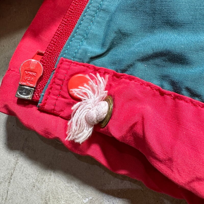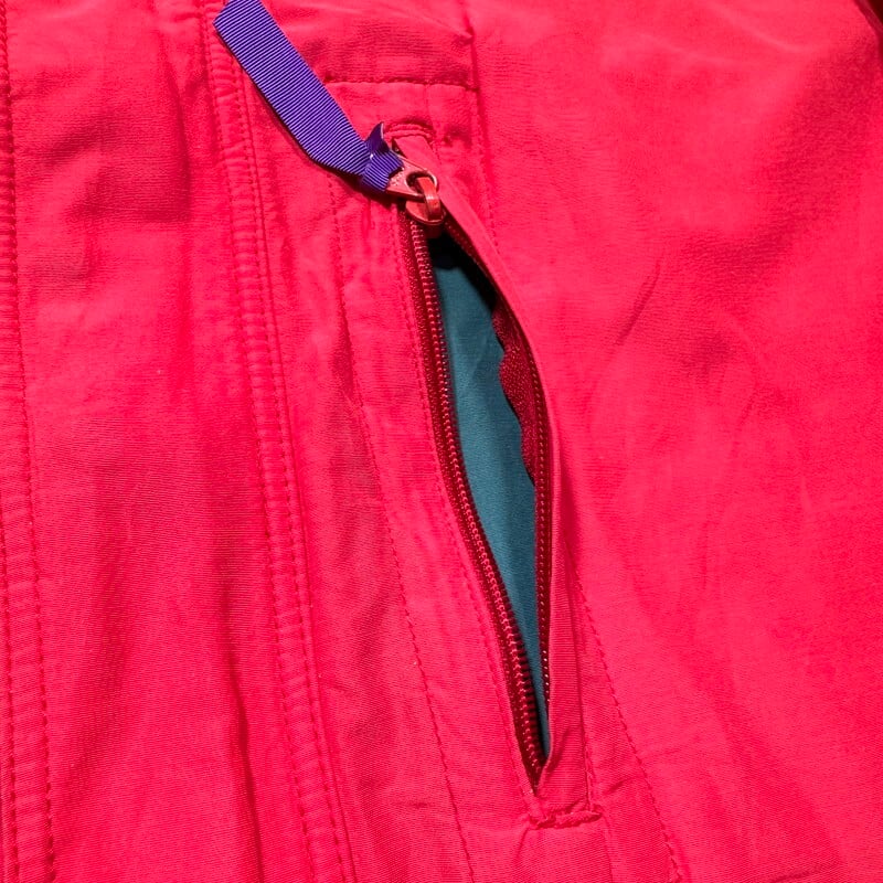 80年代のpatagoniaバギーズジャケットです。®マークが付く89年の希少なUSA製初期モデルです。フロントはYKKジッパーとスナップボタンです。裾には綿紐のドローコードが付きます。欠損しがちなジッパー引手のナイロンテープも残っております。全体的に褪色しており、ヴィンテージアウトドアウェアらしい良い色味を感じれる1着です。袖や襟などに薄汚れが見られますがダメージは特にございません。M表記ですが、身幅はゆったりとしていますのでM~L相当のサイズ感かと思います。着丈は長く無いのですっきりとしたシルエットがオススメなポイントです。初期のバギーズジャケットは年々見つかりづらくなりましたのでお探しだった方は是非この機会にいかがでしょうか。