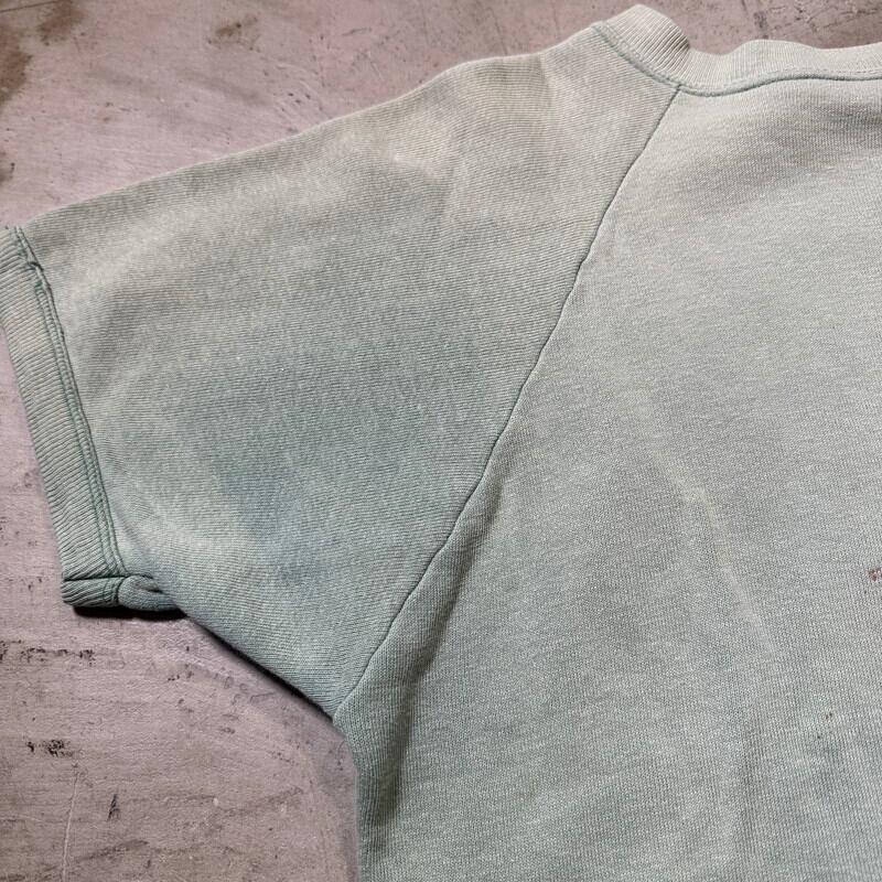 ~60's Unknown CROWN AUTO TOP S/S スウェットシャツ 半袖 ライトグリーン コットン ペンキプリント サンフェード S~M相当 希少 ヴィンテージ BA-2484 RM2903H