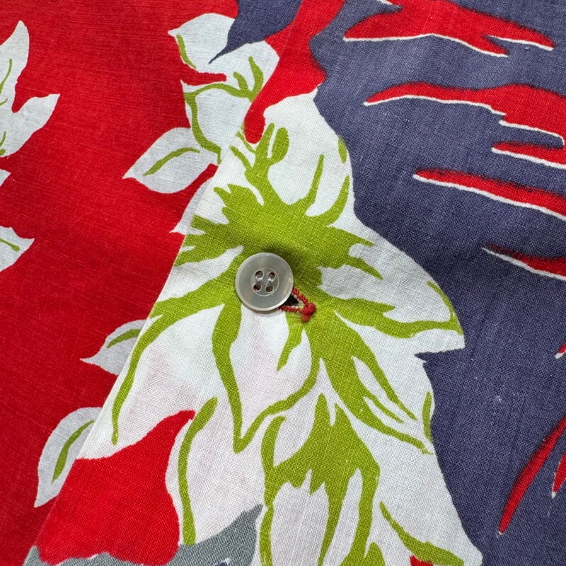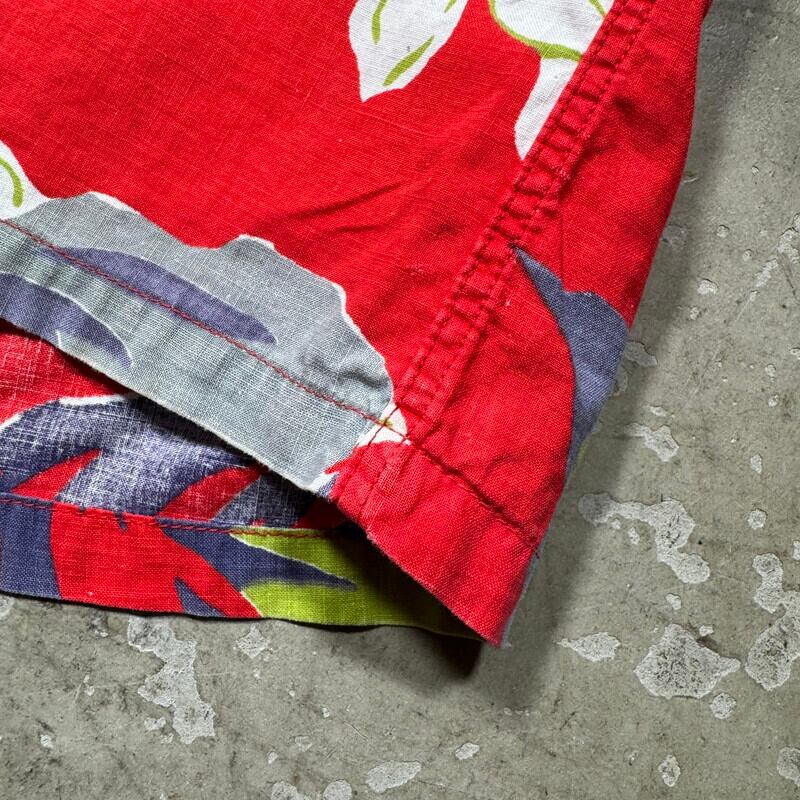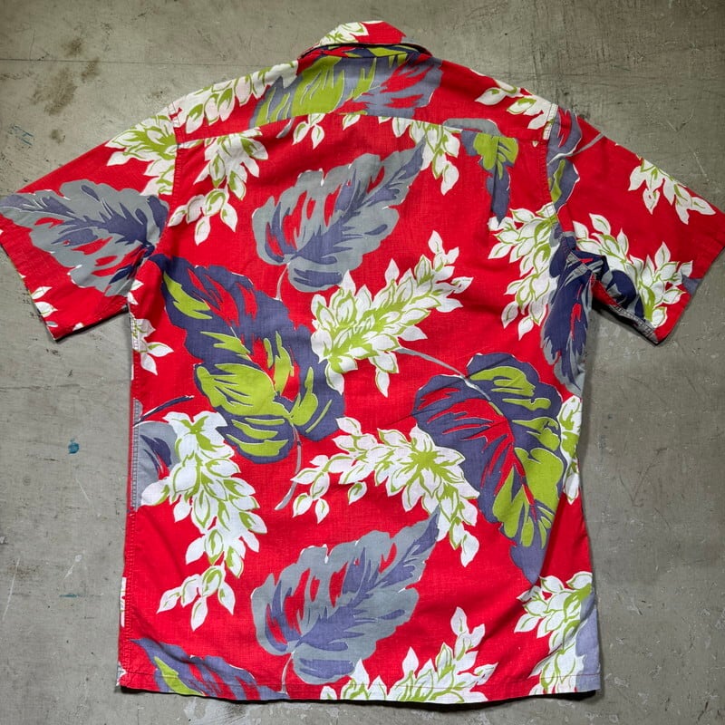 ~50's McGREGOR マクレガー コットンハワイアンシャツ ロングポイント フラワー リーフ レッド 赤 アロハシャツ USA製 Sサイズ 希少 ヴィンテージ BA-2496 RM2915H