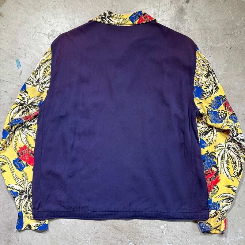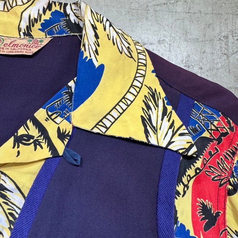 ~50's Delmonico デルモニコ レーヨンギャバジンレイヤードプルオーバーシャツ ガウチョシャツ ハワイアン ロカビリー パームツリー Mサイズ USA製 希少 ヴィンテージ BA-2500 RM2919H
