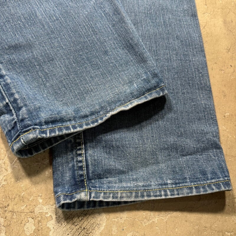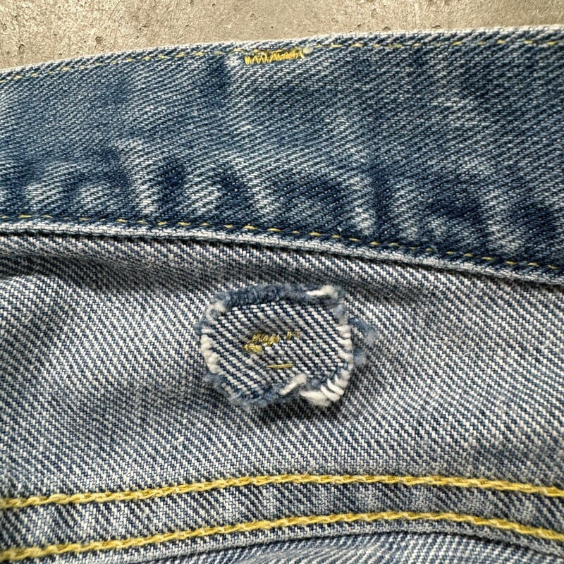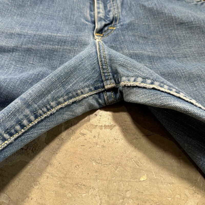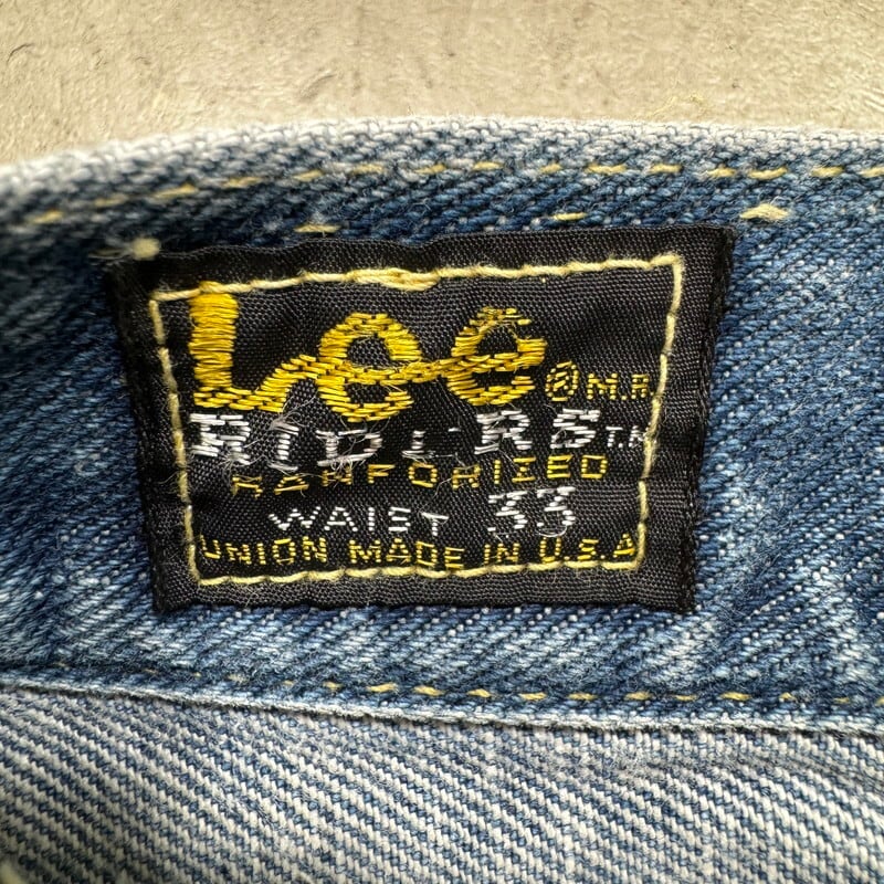 70年代頃のLee RIDERS 200Zストレートデニムです。101Zから200番台へモデルチェンジが行われた頃の最終サイド黒タグが付くモデルです。トップボタン裏は刻印13、フロントはTALONのセミオートマチックジッパーです。内タグピスネーム共に®、MR表記です。ピスネームは大文字仕様です。アウトシームは脇割りです。色残りは3割程でこれからの季節に使い易い色味です。背面のベルトループ付け根に1箇所リペアがございます。その他擦れ等ございますが、大きなダメージ等はございません。ウエストは表記通りW33インチです。こちらのモデルもレングスは長く、裾はシングルステッチですがオリジナルだと思われます。200番台でもサイド黒タグが付くモデルは見つかりづらくなってきましたのでお探しだった方は是非この機会にいかがでしょうか。気軽に穿けるヴィンテージデニムでオススメです。