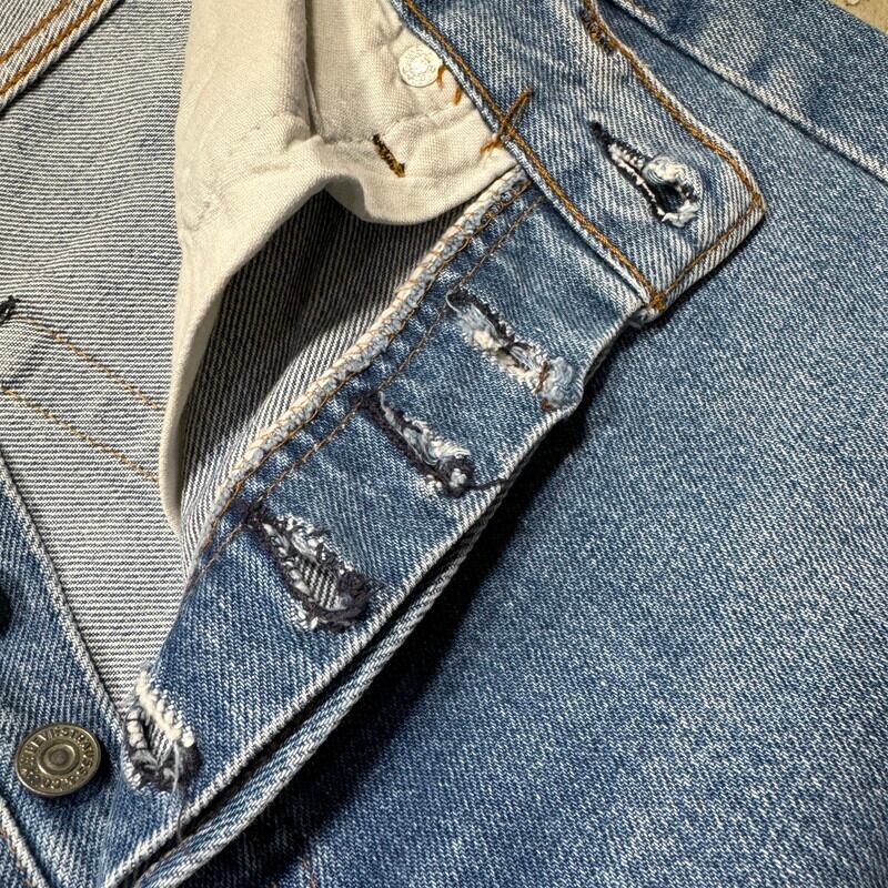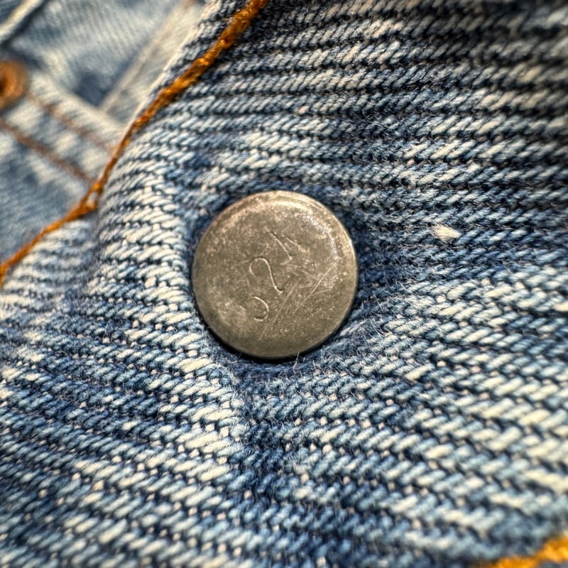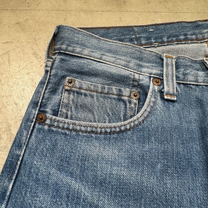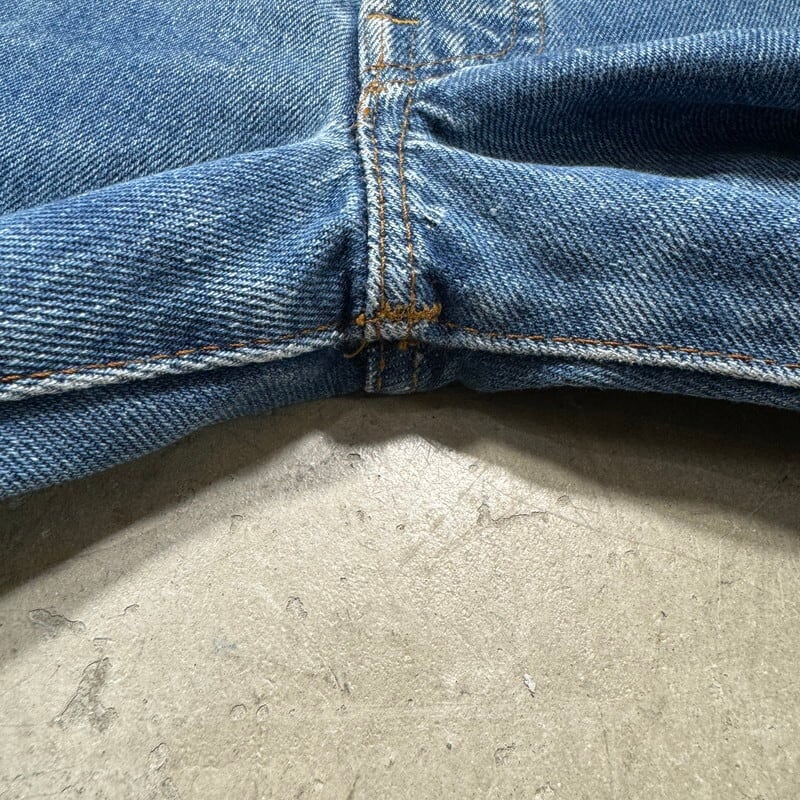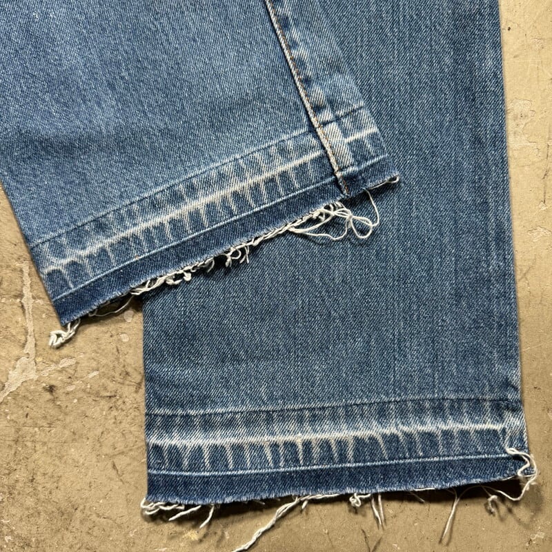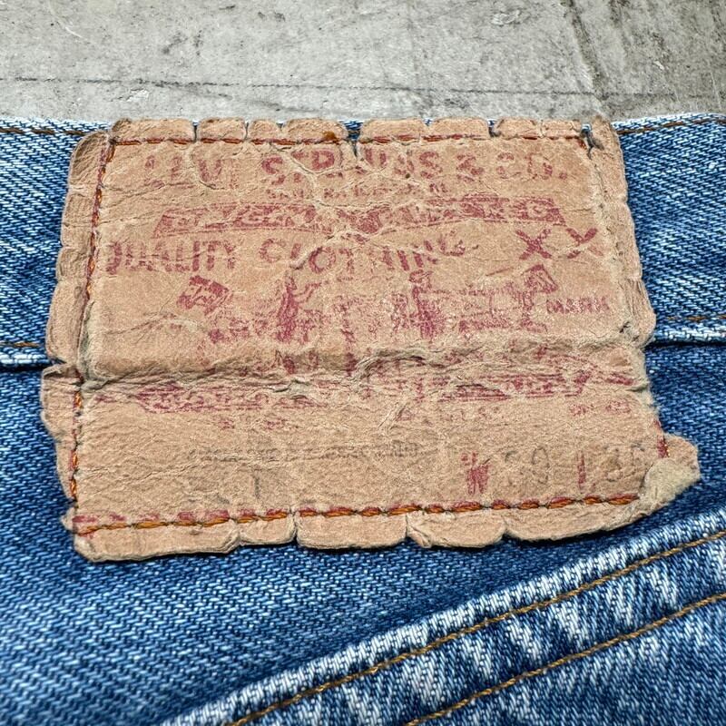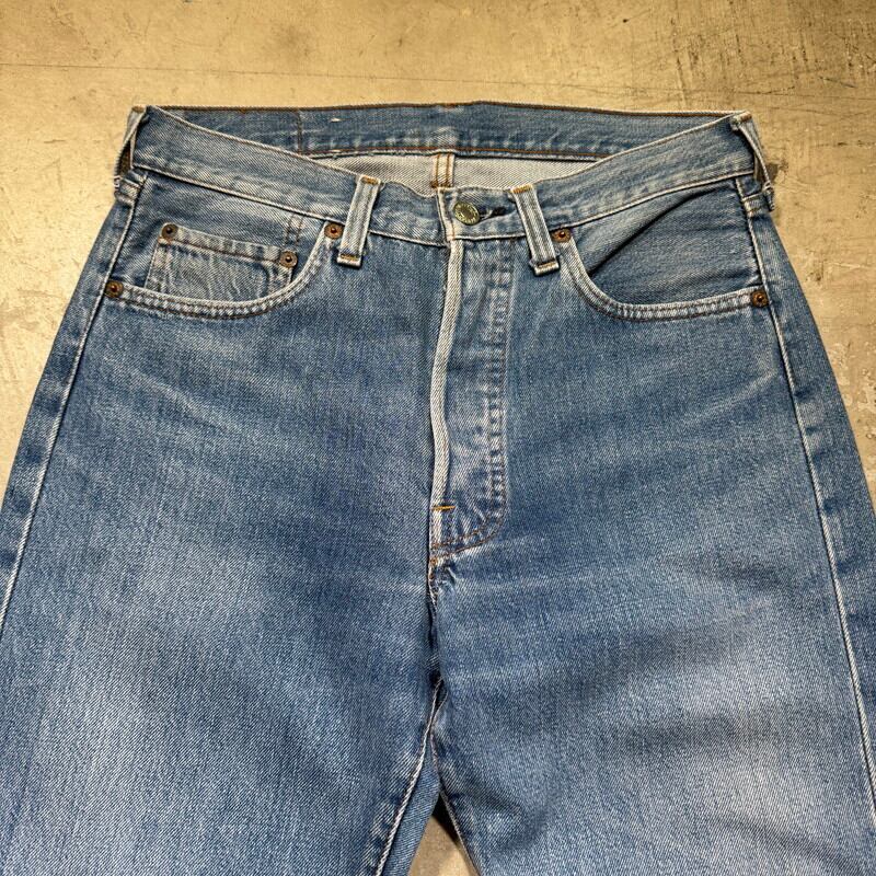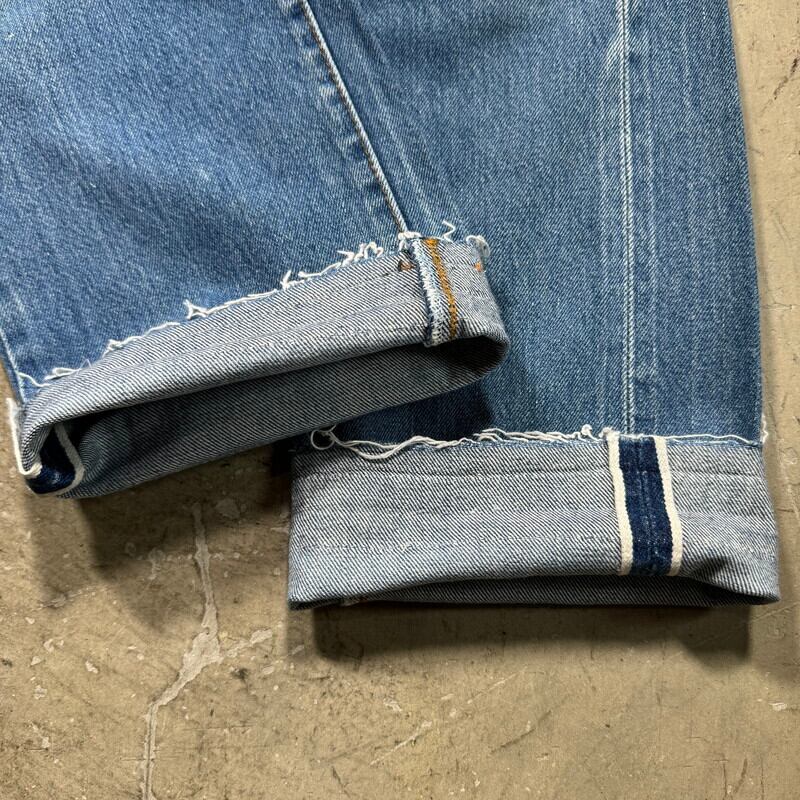 80年代のLevi's501デニム赤耳モデルです。刻印524(エルパソ)、アウトシームセルヴィッジ、内股シングル、赤タブスモールe。色残りは4割程ですが、ヒゲがうっすうらと入る個体です。ダメージやリペア等はございませんが、両裾のステッチを解いてレングスが伸ばされています。気になる方はそのまま折り返して縫い直してもらえば元に戻ります。ウエスト表記はW30インチですが実寸はやや縮みがありW29~30です。男女共に着用できるサイズ感です。以前はレギュラー扱いが多かった赤耳もここ最近ではヴィンテージとしての市民権を得た印象です。復刻以外でセルヴィッジが付く最終モデルですので、サイズが合う方は是非今のうちに手にされても良いかと思います。80年代らしい色落ちで、これからの季節に使い易い色味の一本です。