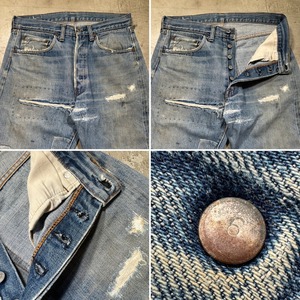 70's Levi's リーバイス 501 デニム 66前期 赤耳 セルヴィッジ 刻印6 スモールe バックポケットシングル 実寸W31 リペア グランジ ダメージ USA製 希少 ヴィンテージ BA-2516 RM2935H