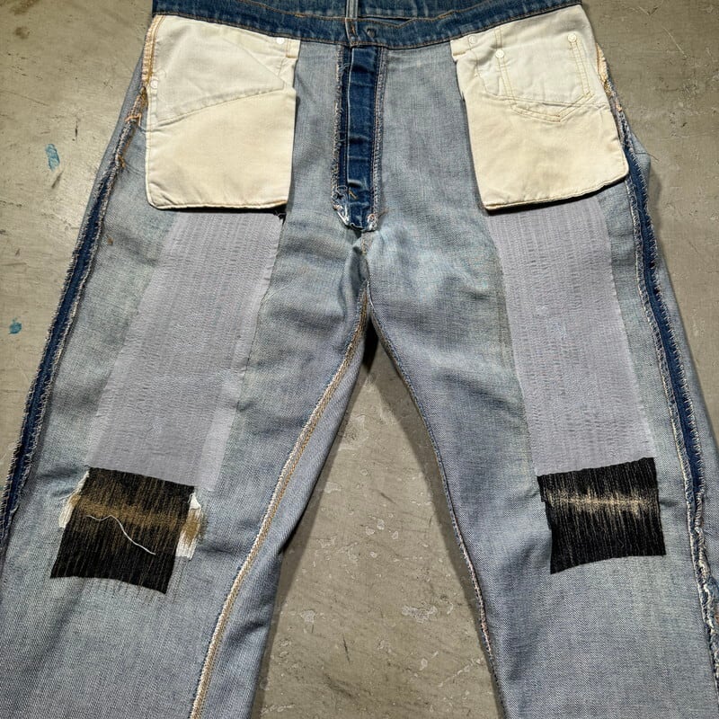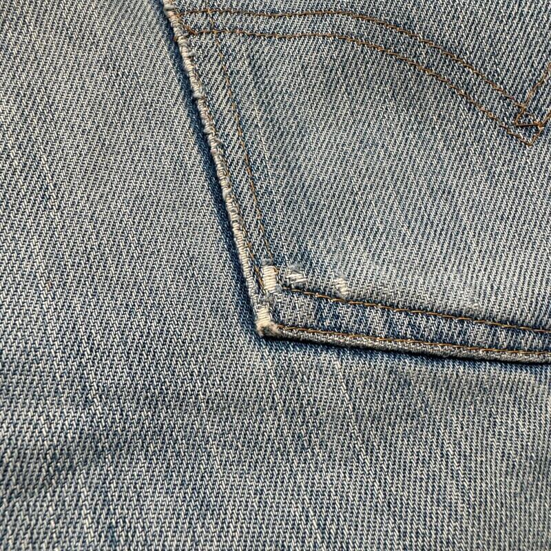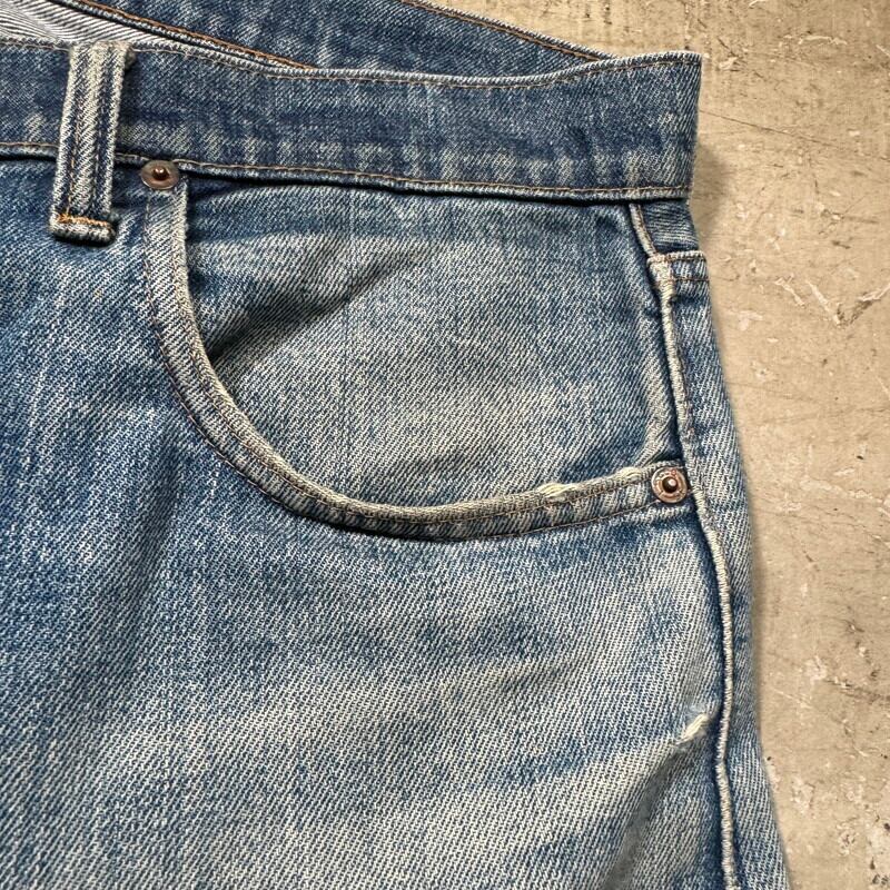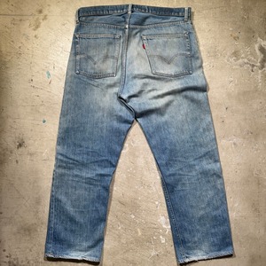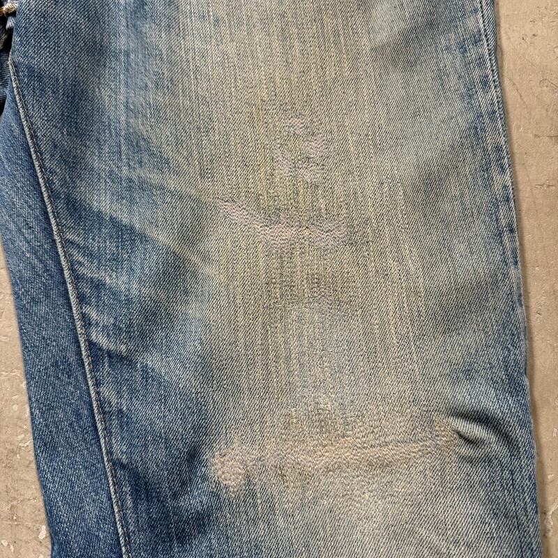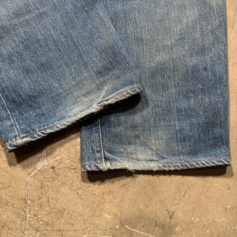 70年代頃のLEVI'S 505 Big Eデニムです。トップボタン裏5、平行ステッチ、42TALON、サイド脇割り。赤タブBig E、不均等V。色残りは4割程で、リペアや薄汚れのバランスが良い1本です。ポケット縁や裾に若干ダメージがあり、両腿、両膝にリペアが施されています。ウエストは実寸でW38インチ程でゆったりとしたサイズ感です。緩めに穿きたい方はウエストをぎゅっと絞って合わせても良いかもしれません。夏らしい良い色落ちですのでアロハシャツtお合わせてみてはいかがでしょうか。
