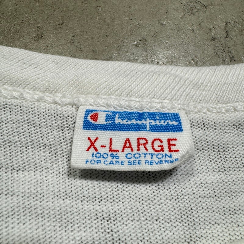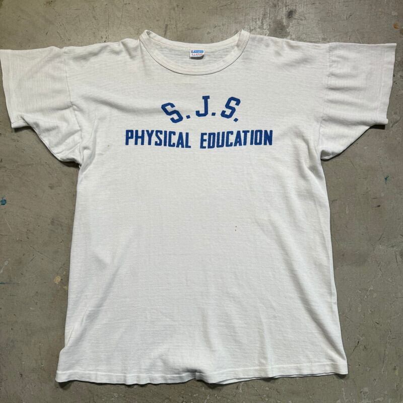70's~ Champion チャンピオン カレッジTシャツ S.J.S.PHYSICAL EDUCATION 染込みプリント ホワイト×ブルー バータグ XLサイズ USA製 希少 ヴィンテージ BA-2531 RM2950H