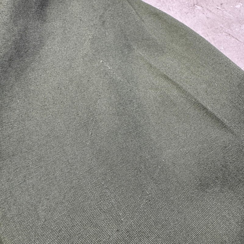 60年代のU.S.ARMYジャングルファティーグジャケットです。ノンリップ生地の3rdモデルです。ポケット下部の水抜き用のドレンホールが省略されています。袖先はV字のガゼットが付く仕様です。胸元にはネームとU.S.ARMYのインシグニアが付きます。左胸と両袖に付いていたワッペンは取り除かれています。フロント下部と内側に元の所有者と思われるSCOVILLの文字がペンで書かれています。擦れて白っぽくなった箇所などはございますが、生地には張りがありコンディションの良い個体です。SMALL REGULAR表記ですがゆったり目な作りですので普段M~L位を着用している方でも合わせていただけるかと思います。リップストップ地に比べ人気の高いノンリップモデルは手に入れておきたいアイテムでは無いでしょうか。お探しだった方は是非この機会にいかがでしょうか。