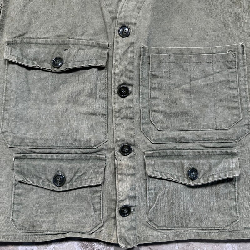 50's PIONEER BRAND DRY-BAK ダックハンティングベスト オリーブグリーン ガチャポケ CANADA アウトドア M相当 希少 ヴィンテージ BA-2543 RM2962H