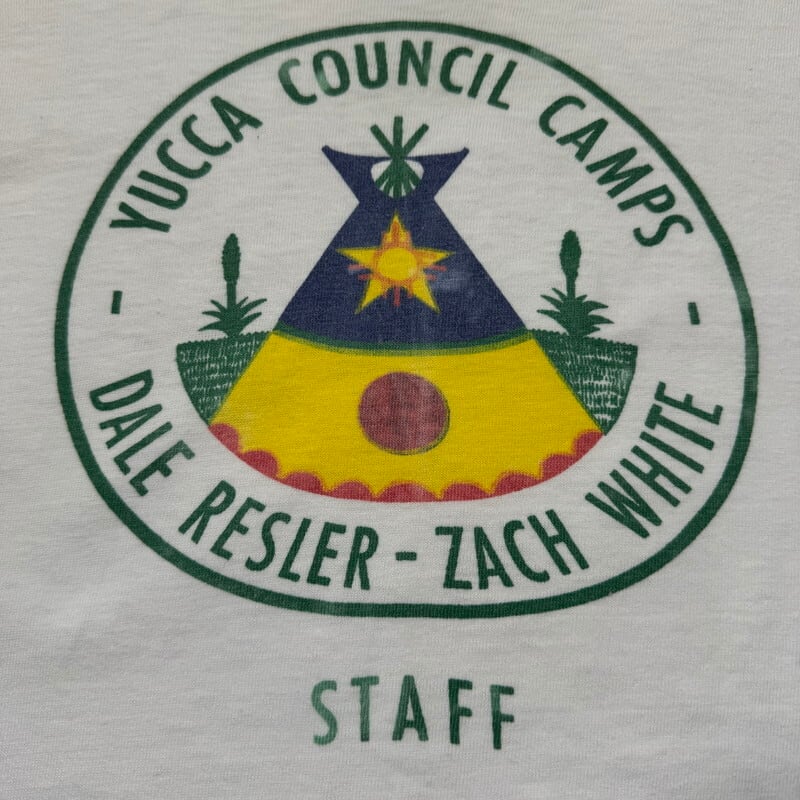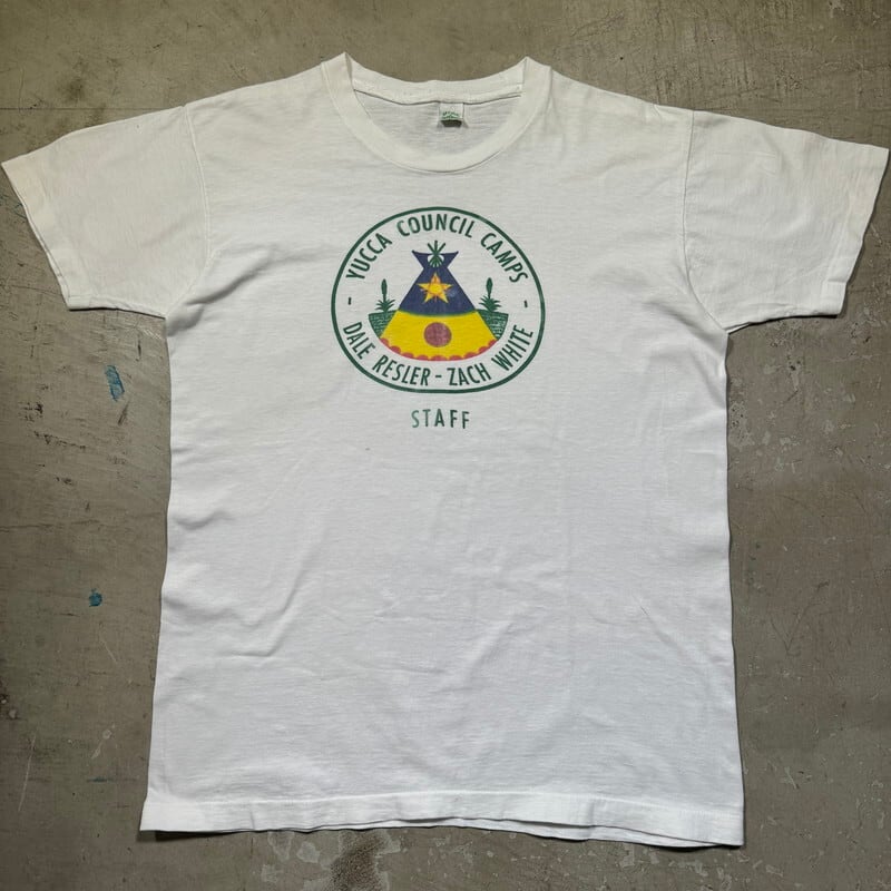 50's~ BOYSCOUT OF AMERICA YUCCA COUNCIL CAMPS STAFF 染込みプリントTee BSA LARGE 40-42 希少 ヴィンテージ BA-2544 RM2963H