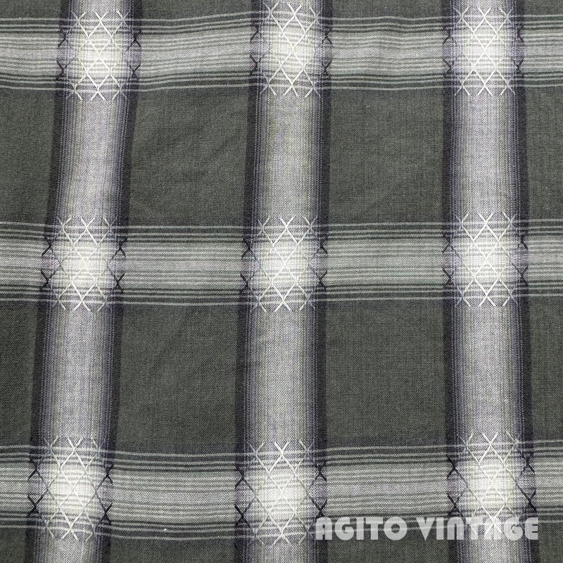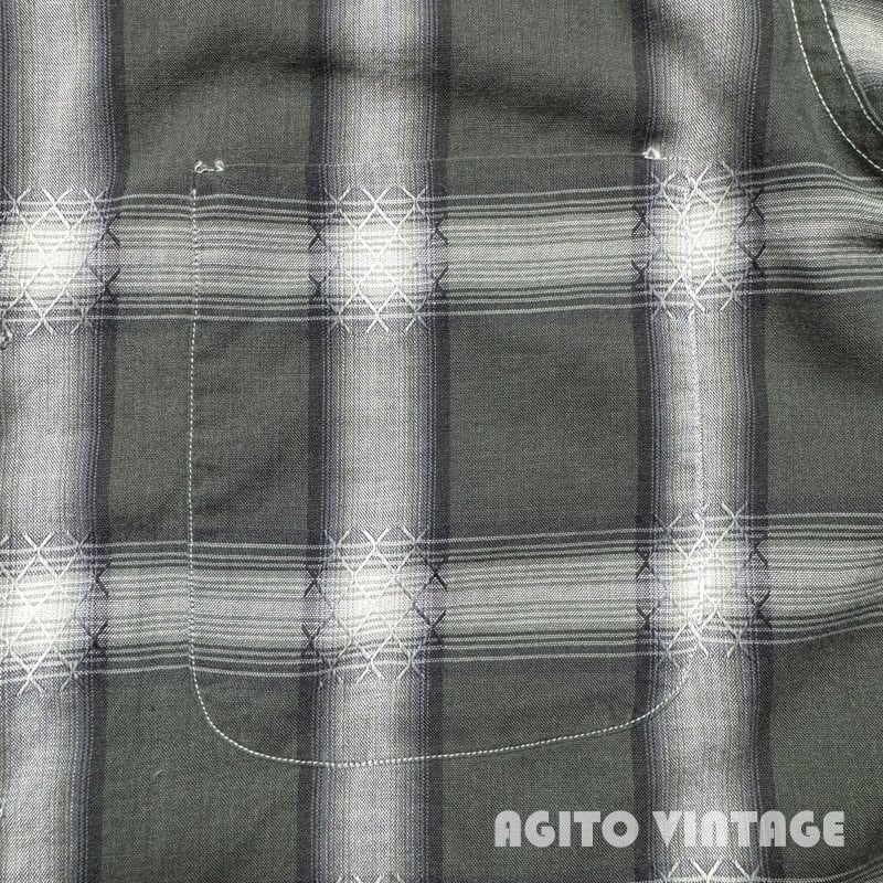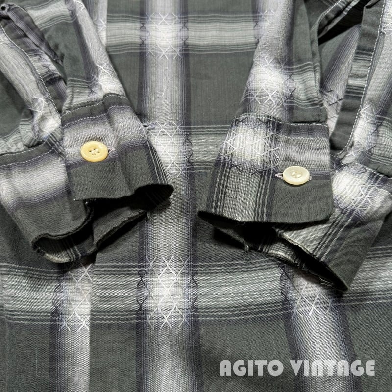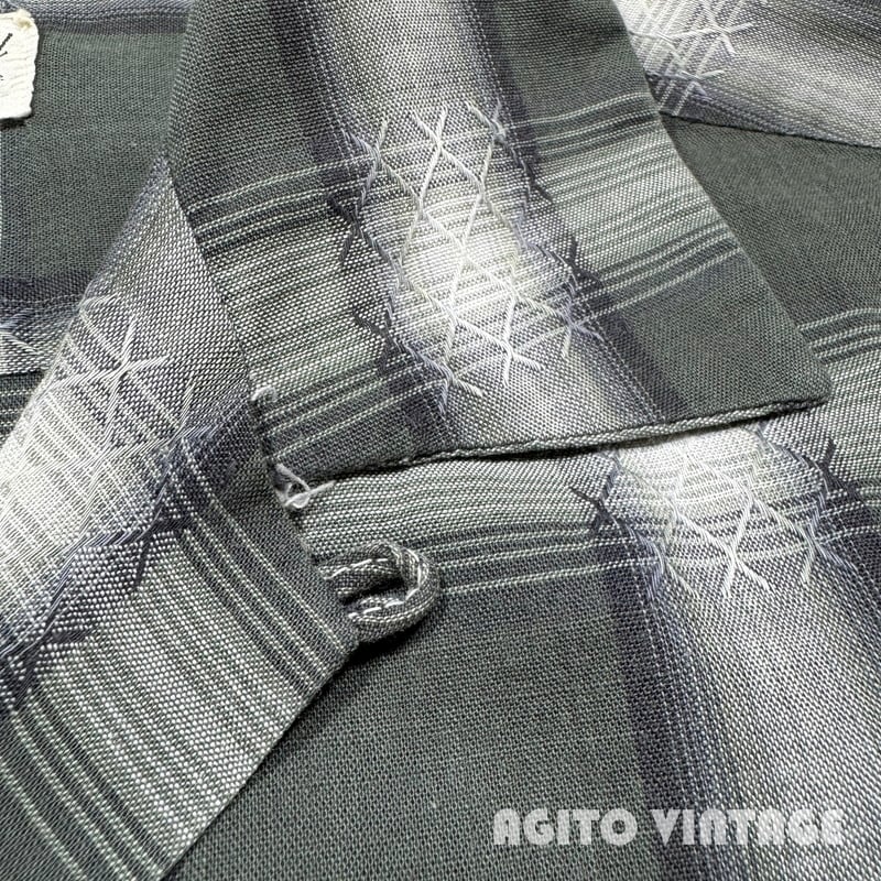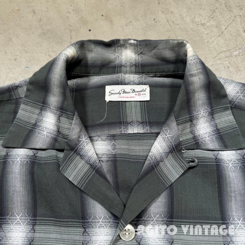 50's 60's Sandy Mac Donald オープンカラーシャツ 開襟 オンブレチェック 織柄 グレー 襟芯なし Mサイズ 希少 ヴィンテージ BA-2551 RM2970H