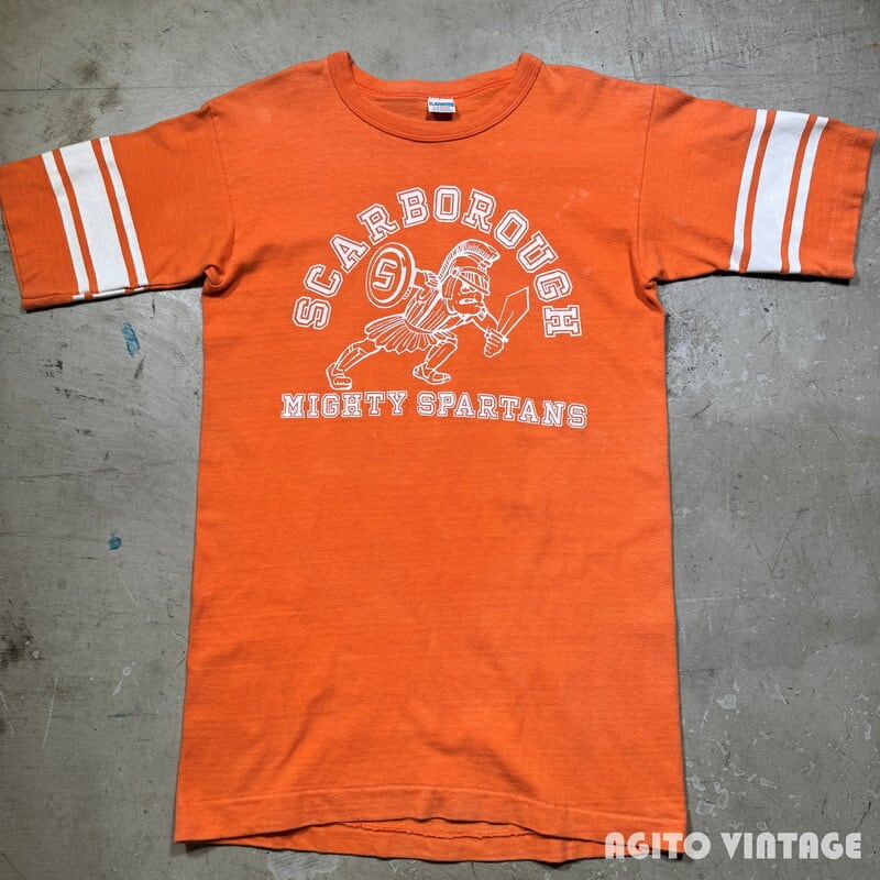 70's~ Champion チャンピオン WIN Tee フットボールTee SCARBOROUGH MIGHTY SPARTANS オレンジ バータグ LARGE USA製 希少 ヴィンテージ BA-2554 RM2973H