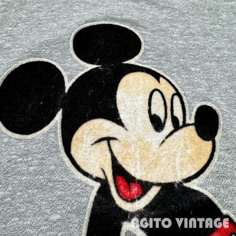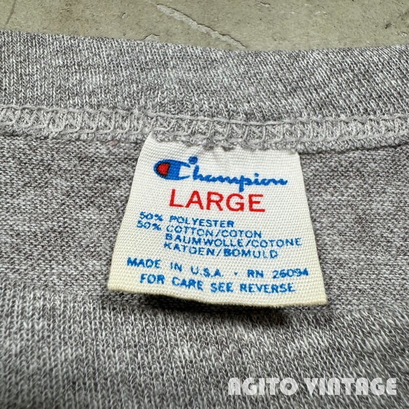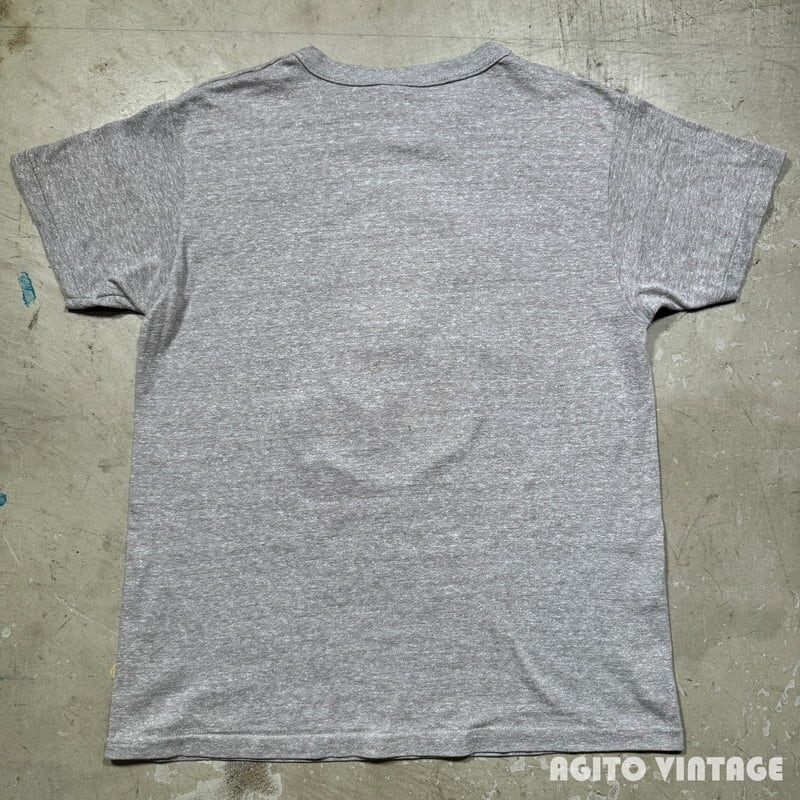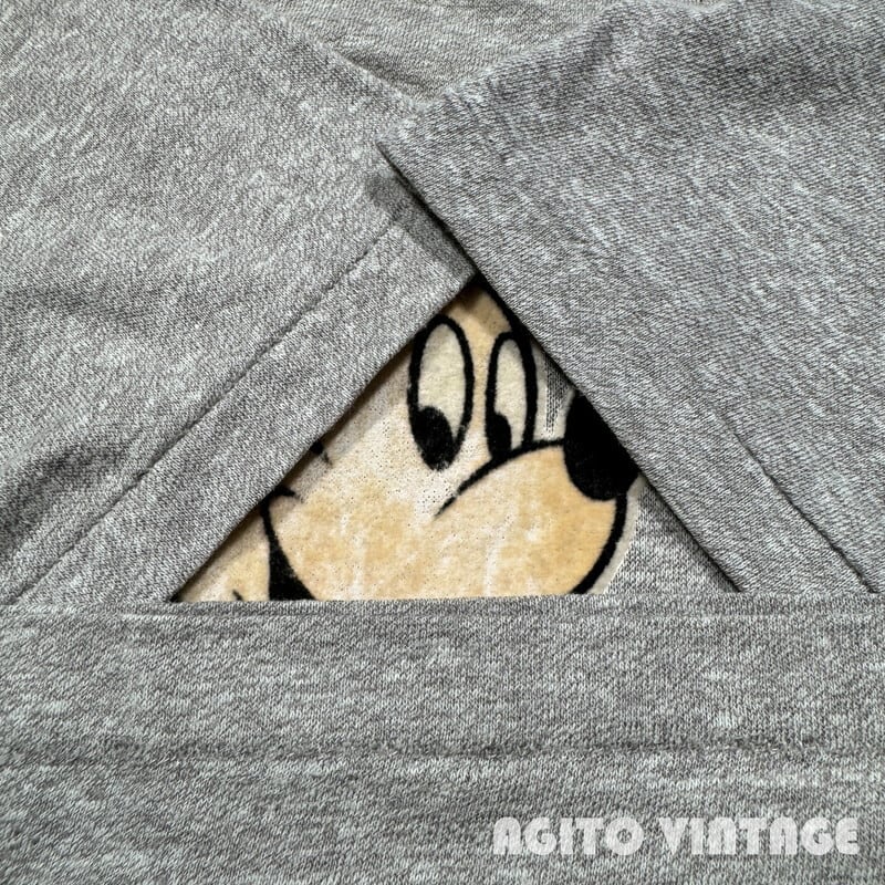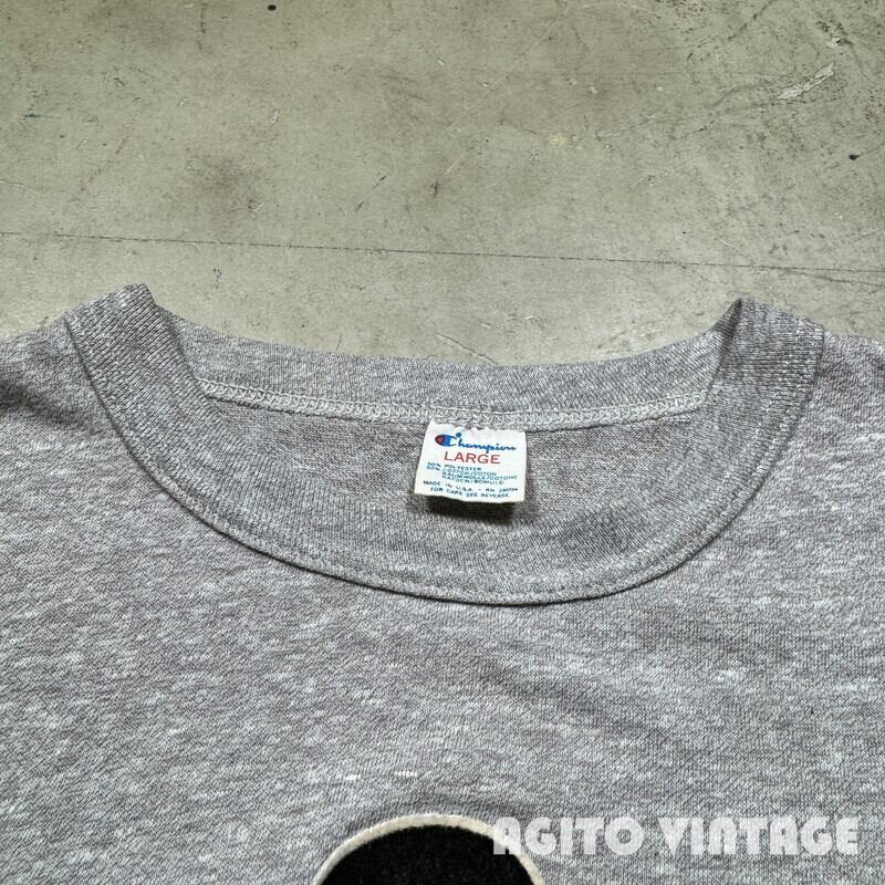 80年代頃のChampionミッキーマウスプリントTeeです。フロントにカラーフロッキーでミッキーマウスがプリントされた1着です。こちらはILLINOIS STATEですが、その他にも違う地名(大学?)がプリントされた物も作られていたようです。コピーライトはWALT DISNEY COMPANYですので1986年以降のモデルだと思われます。ミッキーのフロッキープリントに一部剥がれが見られます。うっすらとした汚れも一部ございます。LARGE表記ですがやや小さめでM相当位のサイズ感だと思います。フロッキー剥がれは一部見られますが、比較的残っている方だと思います。Champion×ミッキーをお探しだった方は是非この機会にいかがでしょうか。