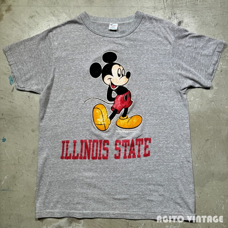 80's Champion チャンピオン ミッキーマウス カラーフロッキープリントTee ILLINOIS STATE トリコタグ LARGE USA製 希少 ヴィンテージ BA-2556 RM2975H