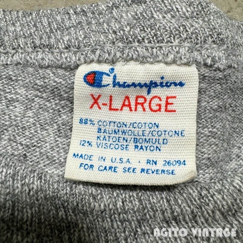 80's Champion チャンピオン 88/12 グレー杢 無地Tee シングルステッチ グッドコンディション X-LARGE USA製 希少 ヴィンテージ BA-2564 RM2983H