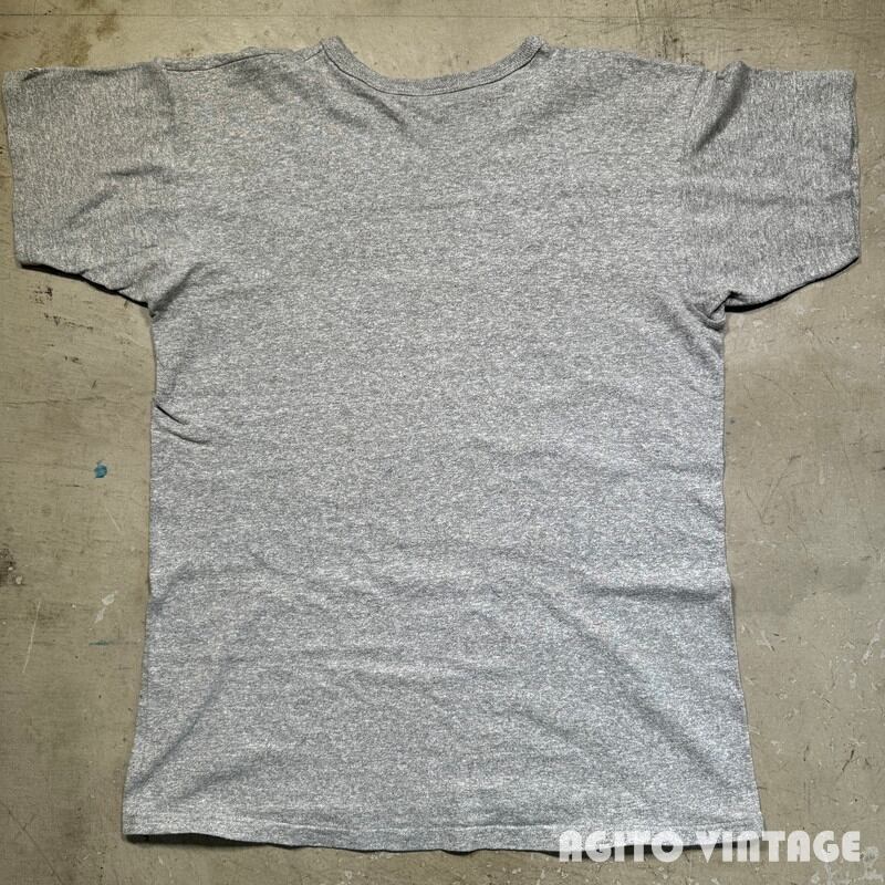 80年代頃のChampionの88/12グレー杢無地Tシャツです。トリコタグが付くこちらはチャンピオンのTシャツでも人気の高い88/12ボディで、プリントなどが入らない無地タイプです。左袖に目玉パッチが付きます。多少撚れ等の使用感はあるものの目立つ汚れやダメージは特になくコンディション良好な個体です。以前に比べるとこの無地Teeも見かける頻度は減ったのかなという印象です。シンプルでコーディネートを選ばない使えるアイテムですので、1枚あると何かと使えます。無地のままはもちろん、オリジナルでシルクスクリーンを施しても良いかもしれません。サイズはXLですのでお探しの方も多いのではないでしょうか。