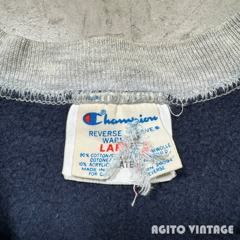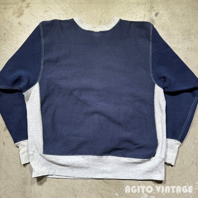 80's Champion チャンピオン リバースウィーブスウェット クレイジーパターン 2トーン 目無し グレー×ネイビー レア LARGE USA製 トリコタグ 希少 ヴィンテージ BA-2575 RM2994H