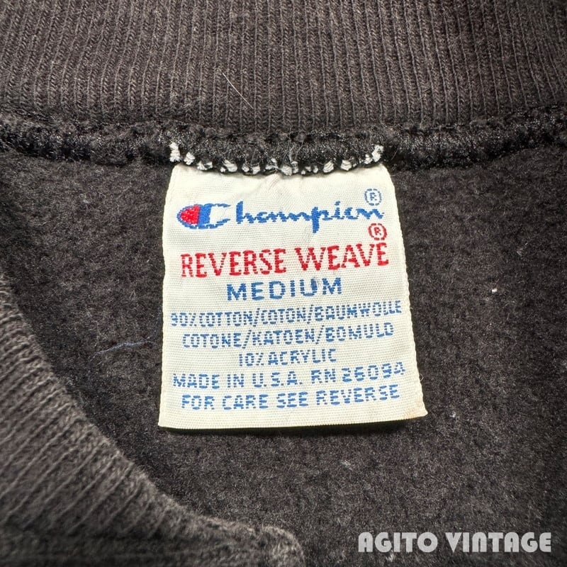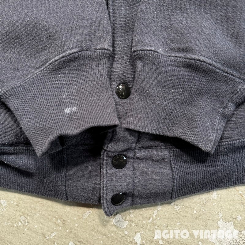 90年代のChampionリバースウィーブスナップカーディガンです。刺繍タグが付くUSA製モデルです。ご紹介するこちらは、人気の高いブラックカラーで全体的にややフェードした個体です。毛羽立ちなど使用感はございますが、スナップの故障はございません。背面に一か所ダメージがあったので内側から接着芯で補強しており着用に問題は無いと思います。Mサイズで、スナップを全て閉じるとやや身幅が狭めに感じますが、フロントを開けての着用ですと男女共に使い易いサイズ感だと思います。ブラックはやはり注目されている方も多いと思いますので、お探しだった方は是非この機会にいかがでしょうか。