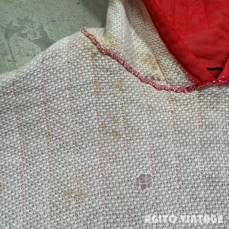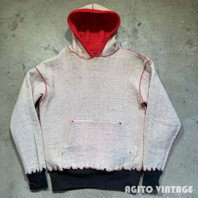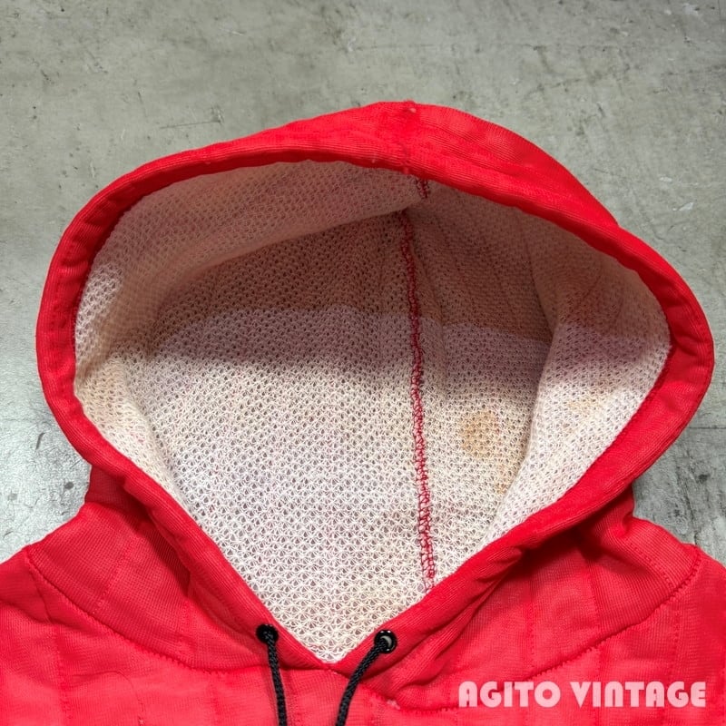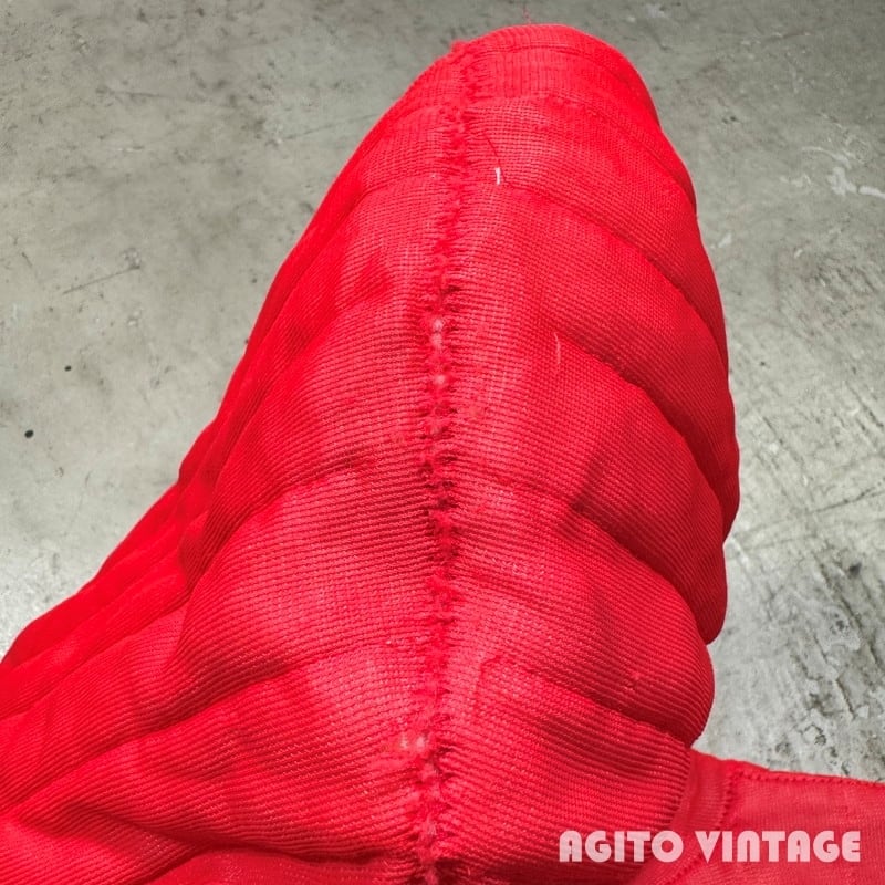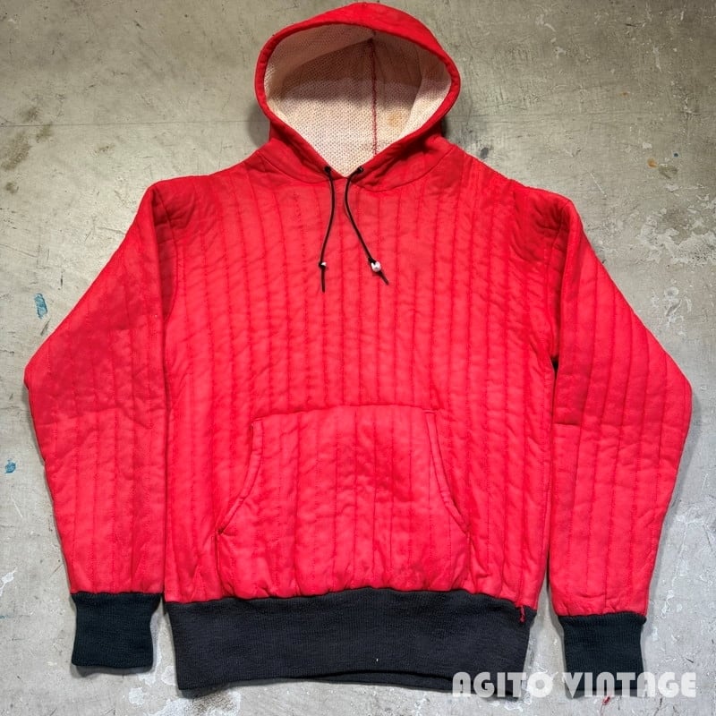 60年代頃のUnknown 2トーンキルティングパーカーです。表はDACRON88という素材のキルティング、裏地はコットンのサーマルです。全体的に使用感があり、細かな擦れや小傷もありフードのセンターステッチにやや緩みが出ています。内側のサーマルには一部ダメージや汚れがございます。MEDIUM表記ですが小さめな作りですので実寸はS相当かと思われます。小柄な女性でも着やすいサイズ感だと思います。赤×黒の2トーンは存在感もあるのでお好きな方もいらっしゃるのではないでしょうか。スウェットに比べ軽く温かいというのもポイントが高いです。ミリタリーパンツとの相性は抜群ですので是非サイズが合う方はこの機会にいかがでしょうか。