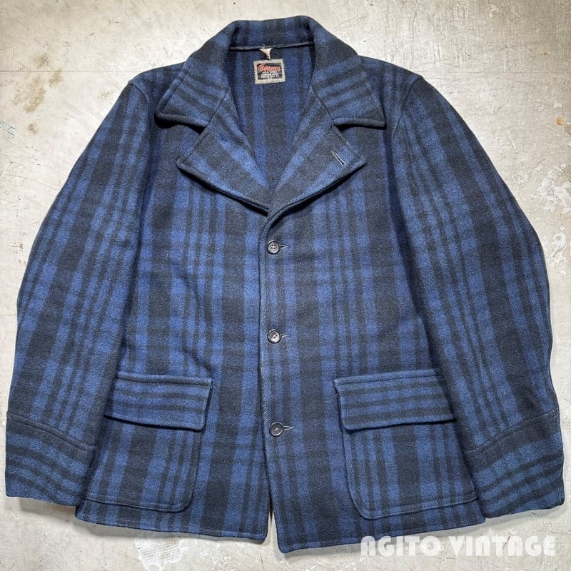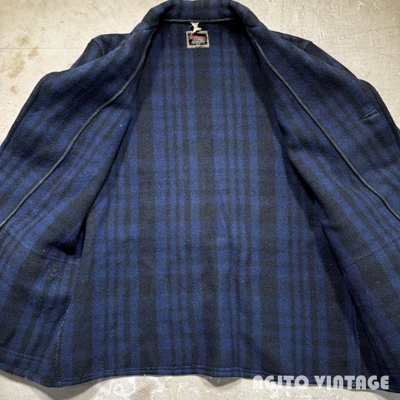 30's 40's CHIPPEWA FALLS WOOLEN MILLS チペワ ウールジャケット ブルーチェック ハーフコート 44 L相当 希少 ヴィンテージ BA-2602 RM3021H