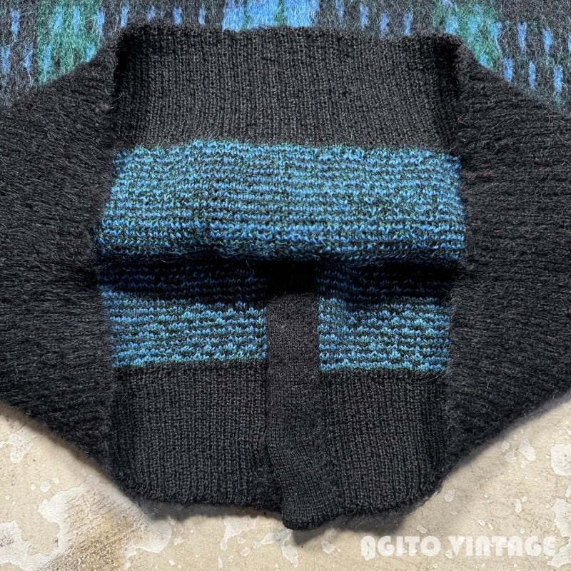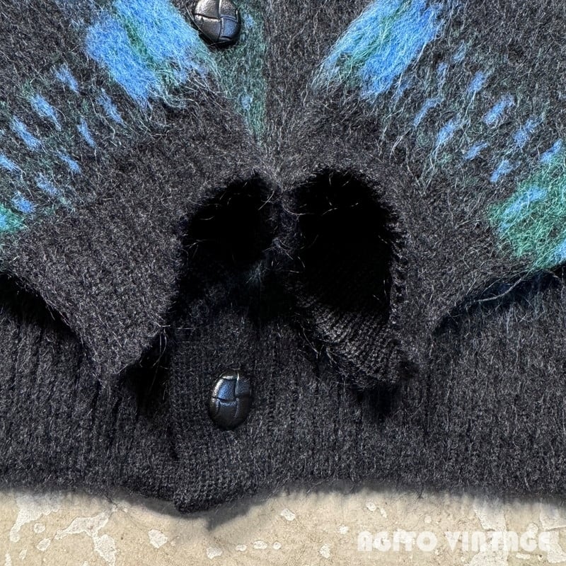 60's CAMPUS キャンパス ウールモヘアカーディガン ブラック ブルー グリーン Lサイズ USA製 希少 ヴィンテージ BA-2605 RM3024H