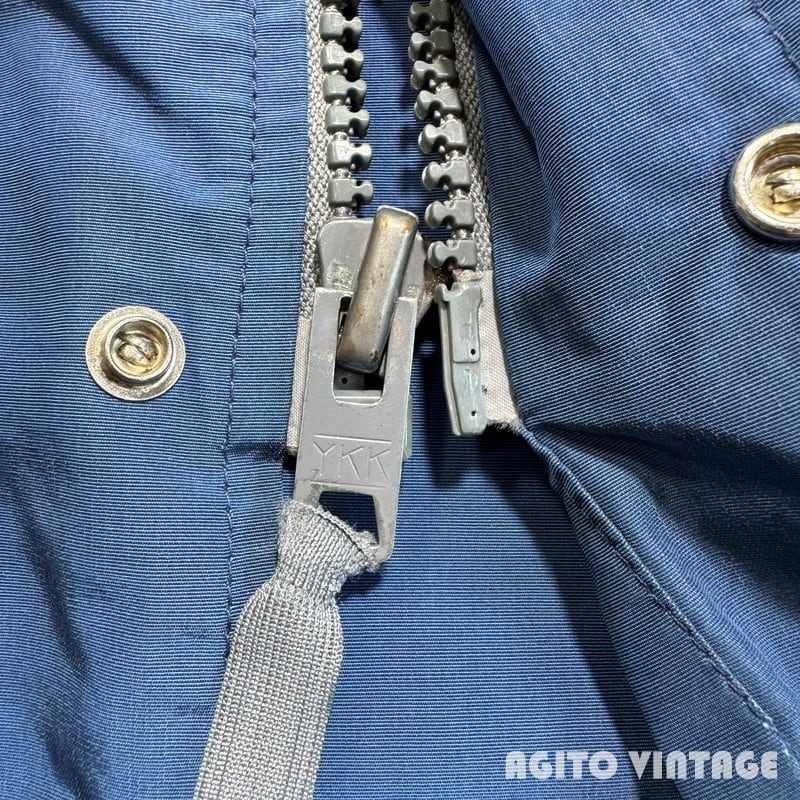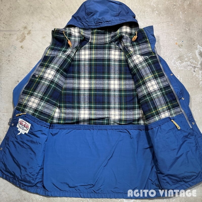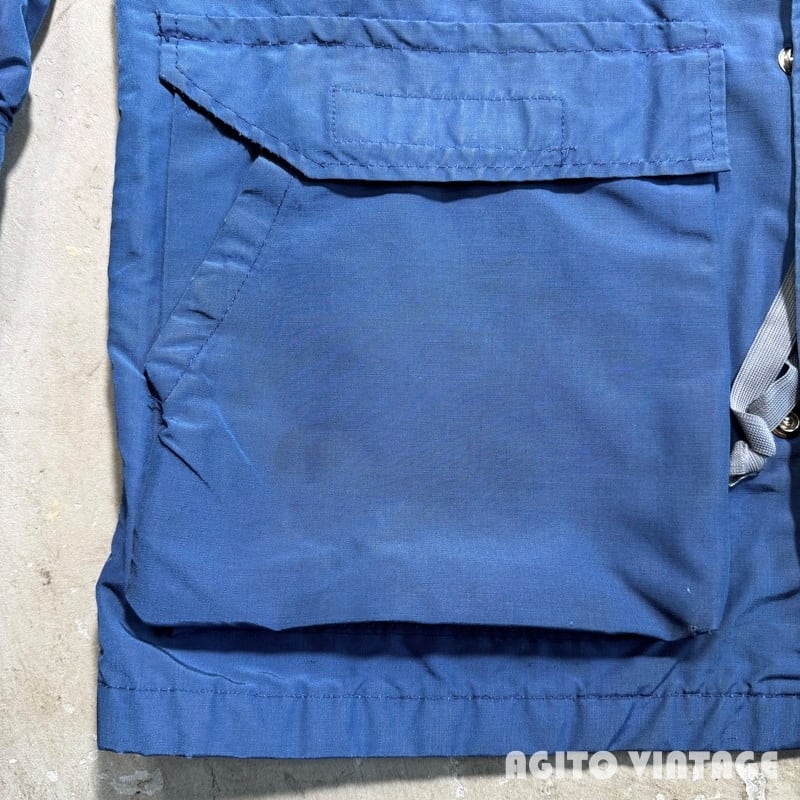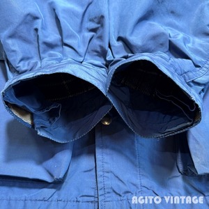 70年代頃のSIERRA DESIGNSマウンテンパーカーです。1965年にリフォルニア州リッチモンドで創業した老舗アウトドアブランドで、シエラデザインズの代名詞といえるこのマウンテンパーカーは、創業から僅か3年後に発売された名品です。ブランドタグが欠損していますが、7本木タグが備わっていたと思われます。フロントはデカYKKジッパーが使用されています。ウールのライニングがあるタイプで、背面にはマップポケットもございます。初期のモデルに見られる無刻印のスナップボタンです。全体的に使用感があり、ポケットにシミや汚れがございます。その他細かな擦れや薄汚れが等ございます。M表記でシエラのマウンテンパーカーはやや着丈が長めな印象です。マウンテンパーカーの元祖と呼ばれるシエラの傑作は現在でも作り続けられていますがやはり初期のオリジナルが良いという方も多いのではないでしょうか。ヘヴィーデューティーなスタイルがお好きな方は是非この機会にお求めください。