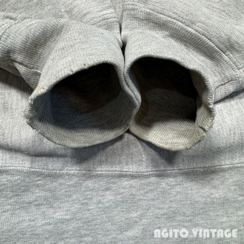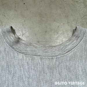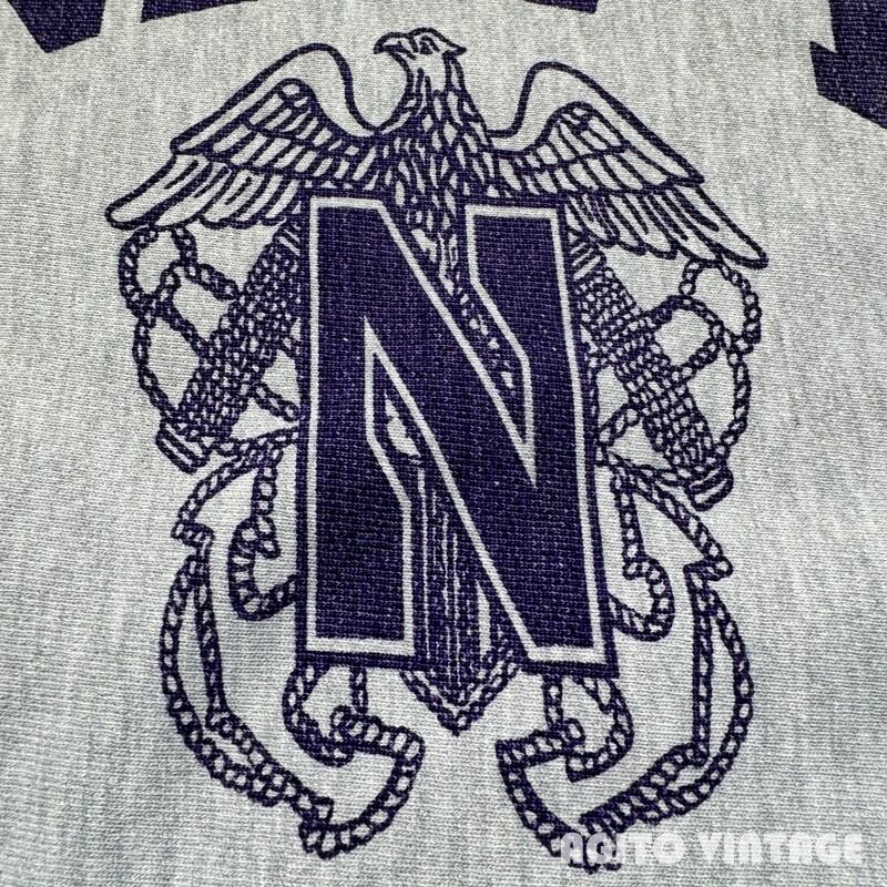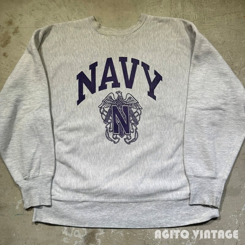 80年代のChampionリバースウィーブスウェットです。トリコタグが付くこちらは一般的に知られるU.S.NAVYプリントでは無くNAVYの文字の下にイーグルと大きなNの文字が入る珍しいタイプで、プリントはパープルカラーです(ネイビーが褪色しているのかもしれません)。襟と袖先にやや汚れが見られ、袖リブに若干ダメージがございます。その他は特にひどいダメージ等はございません。LARGE表記で、身幅もあり着やすいサイズ感です。リバースウィーブのなかでも評価の高いミリタリー関連のプリントが入りますが、こちらのプリントは数も少なく実物を見る機会はかなり少ないかと思います。サイズも良いので珍しいプリントのリバースをお探しだった方は是非この機会をお見逃しなく。