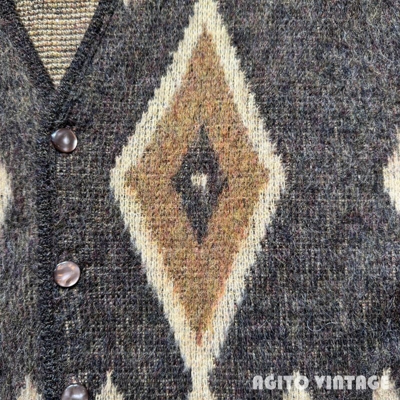 60's Finecraft ORIGINAL MOHAIR CARDIGAN モヘアニットカーディガン モヘア40% 混紡 ダイア柄 S~M相当 希少 ヴィンテージ BA-2637 RM3056H