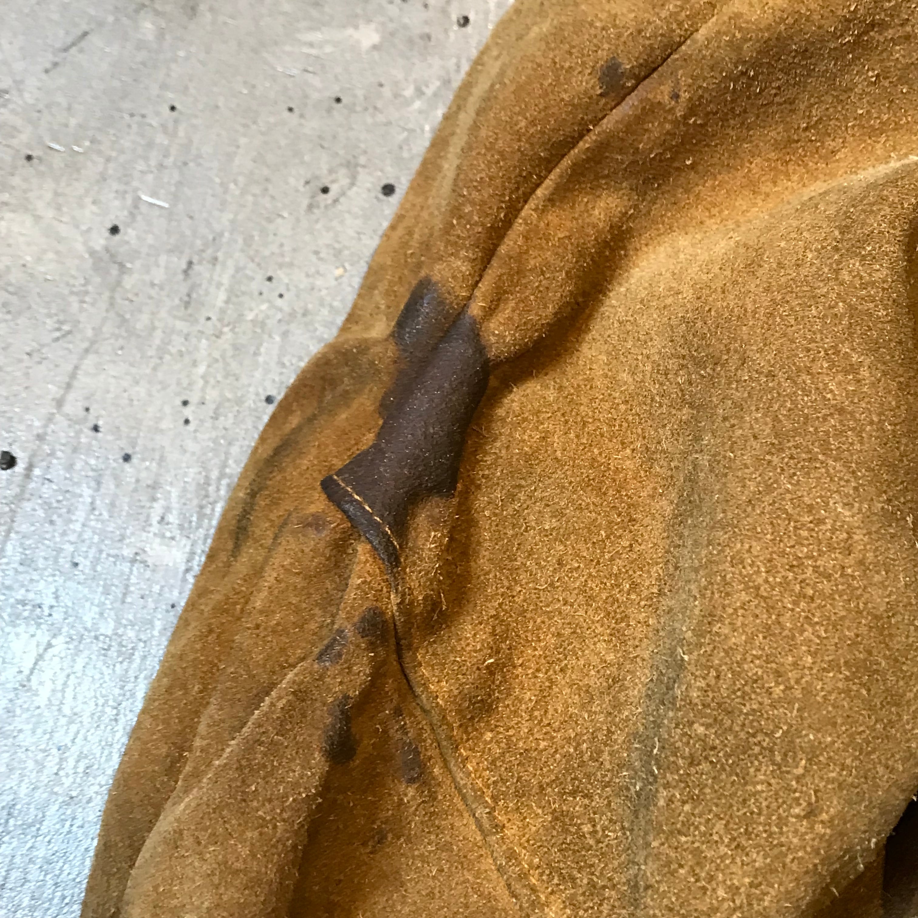 全体にすれや汚れが有り、みぎの袖口に破れ、左肘にスエードどが硬くなっている箇所がございます。