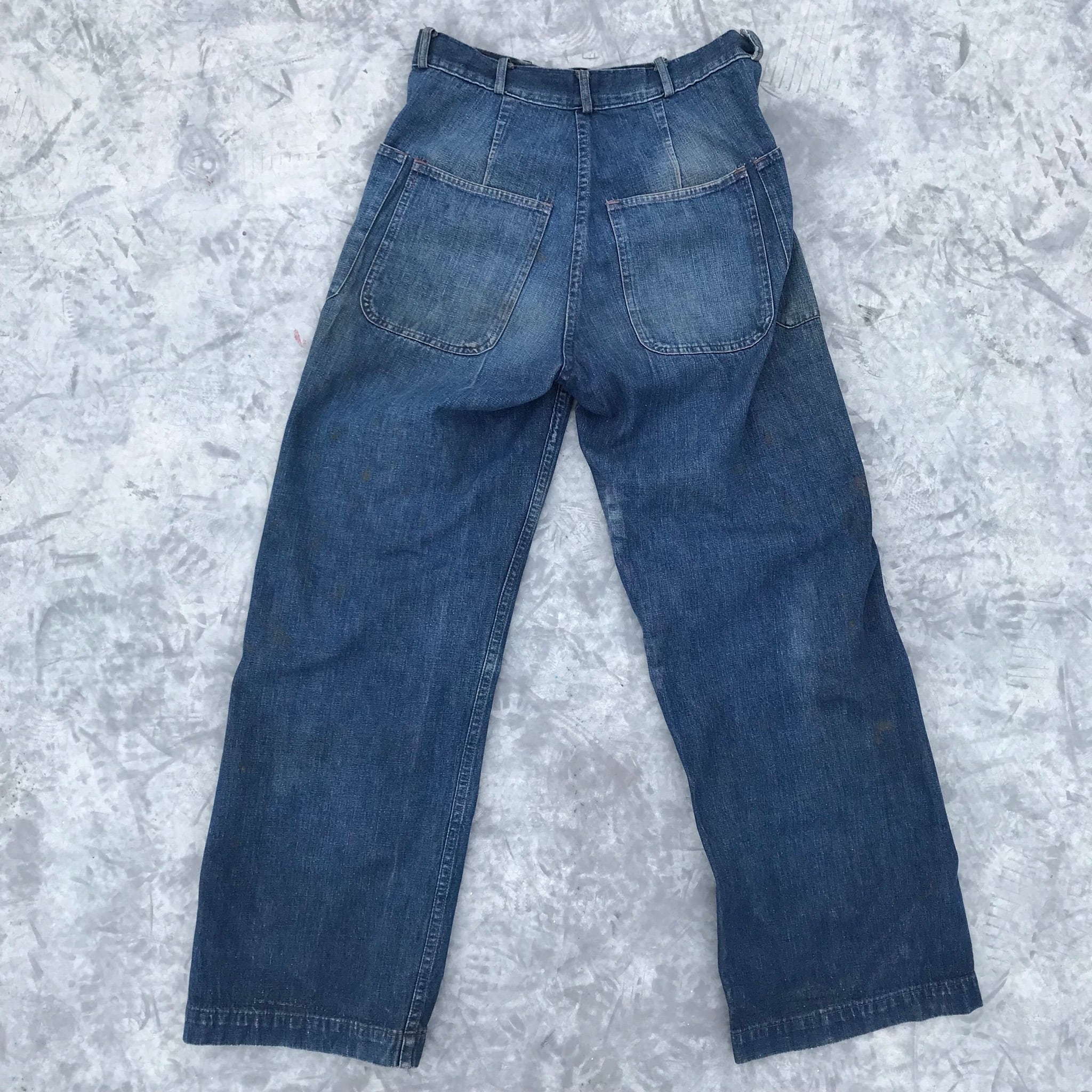 40's U.S.NAVY デニムセーラーパンツ WW II 巻きパンツ ストレートタイプ W30 色落ち良好 ミリタリー