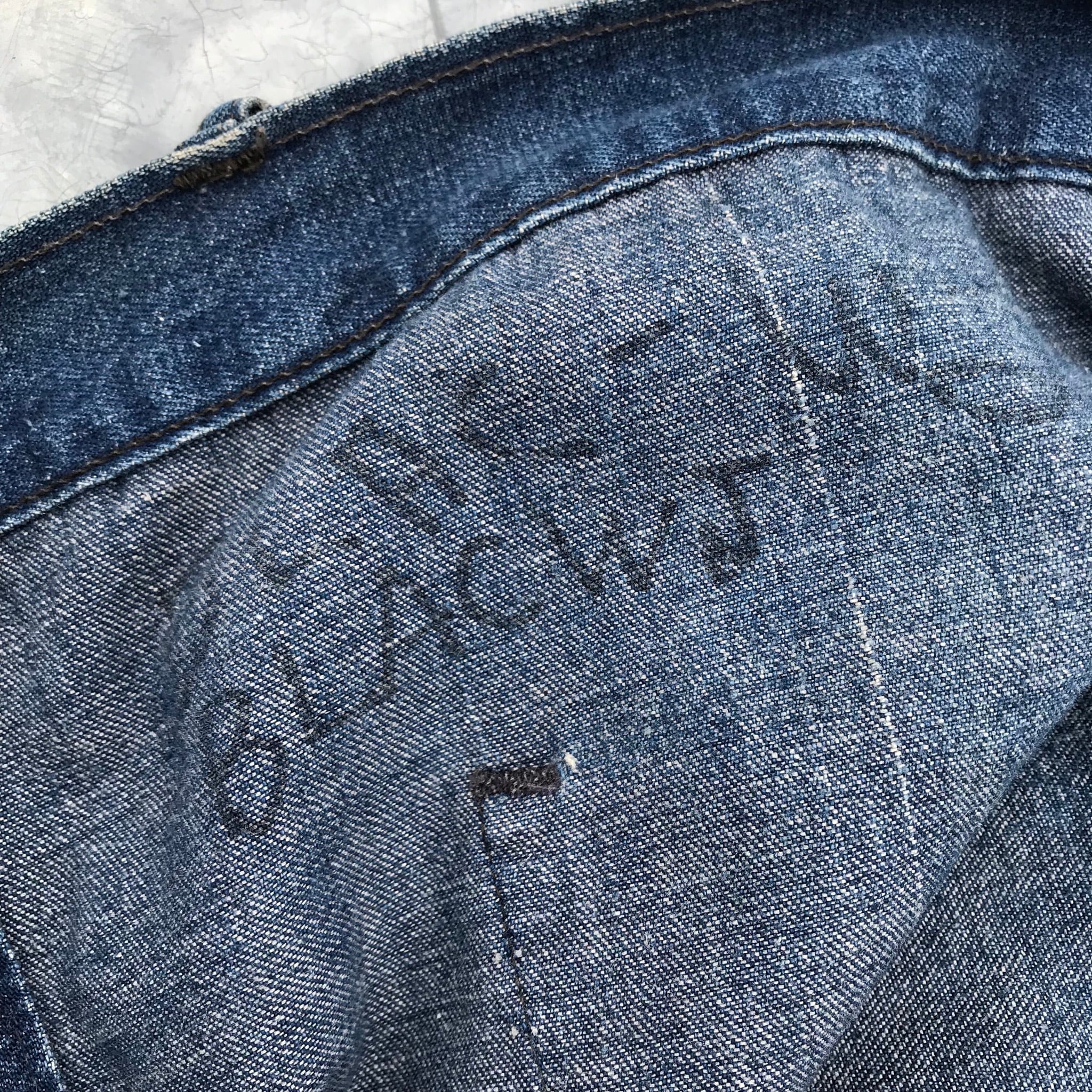 40's頃のU.S.NAVY デニムセーラーパンツです。アウトシームのない通称”巻きパンツ”と呼ばれ、今ではかなり少なくなっている個体です。こちらはフレアでは無く、太いストレートタイプです。色落ちもバランスよく、シミ汚れとの相乗効果で雰囲気たっぷりです。W30くらいですので、女性でも着用しやすいサイズ感です。