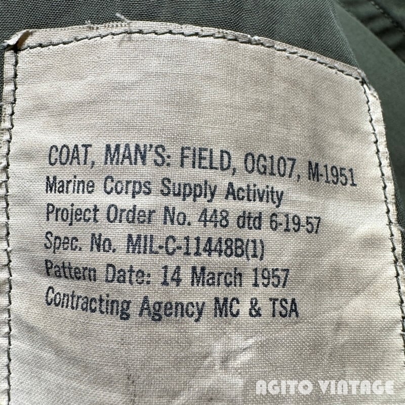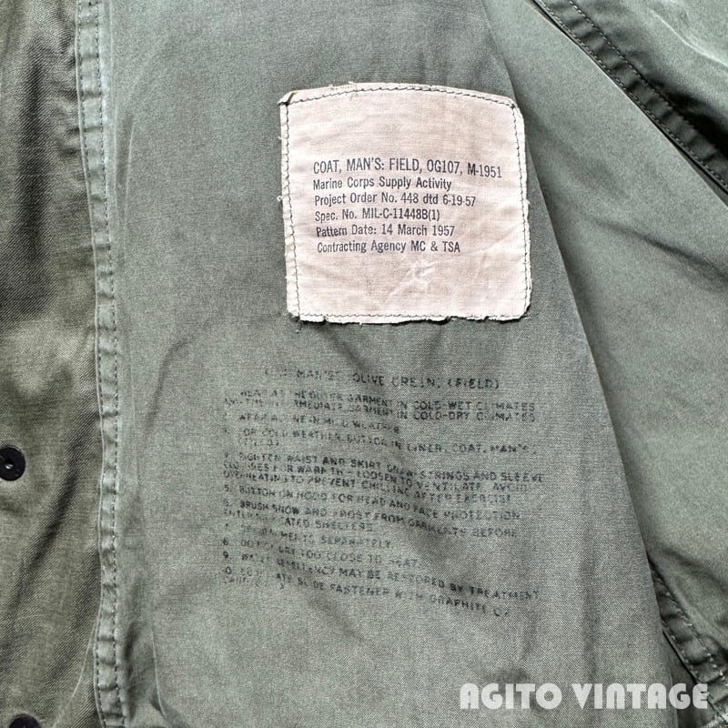 50's U.S.MARINE CORPS M-1951 M-51 フィールドジャケット Marine Corps Supply Activity MIL-C-114488 海兵隊仕様 MEDIUM REGULAR 米軍 希少 ヴィンテージ BA-2640 RM3059H