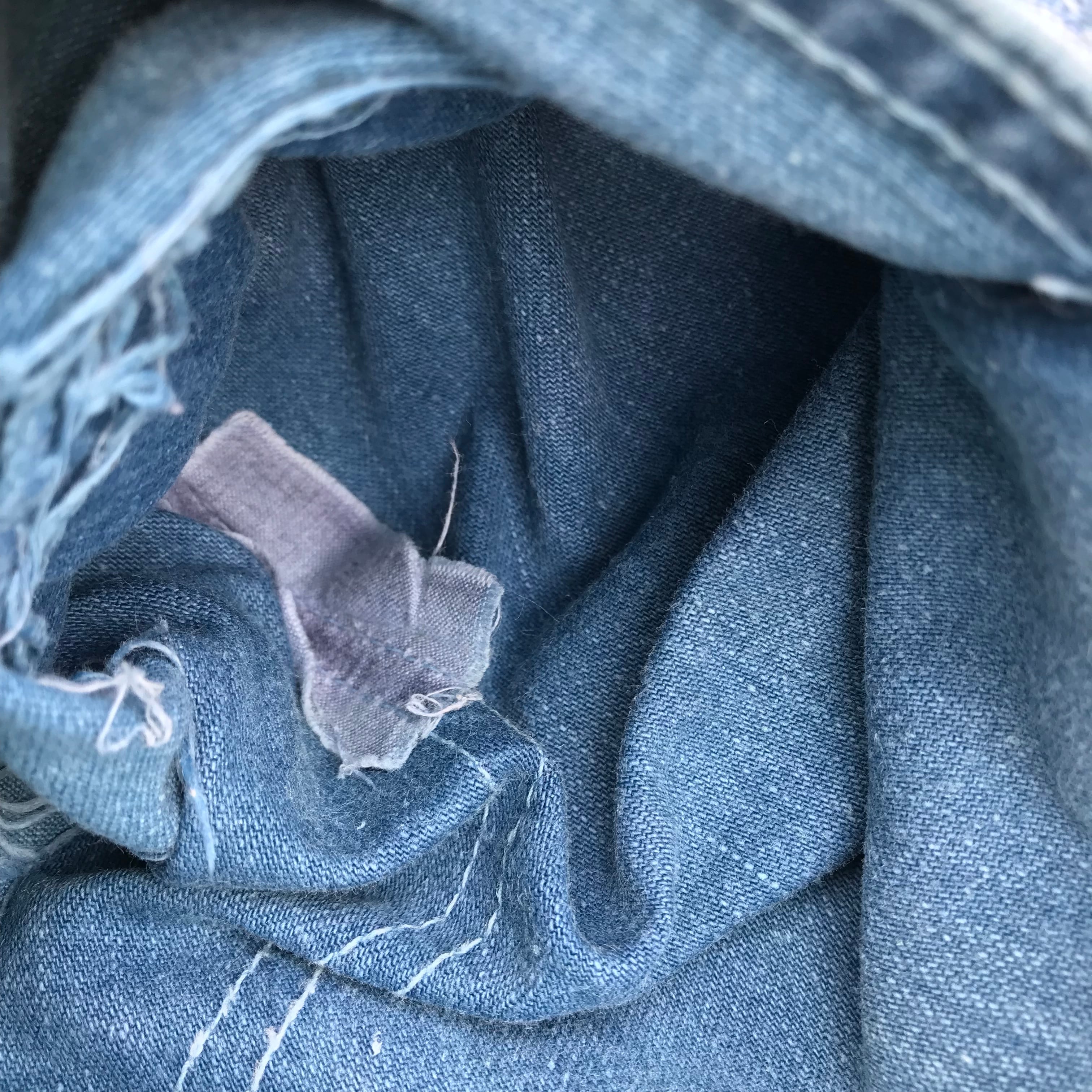 60's頃のPAY DAY デニムオーバーオールです。フロントのタグは欠損していますが背面には「SQUERE BAK」表記のあるタグ付きです。通常のデニムの色味と違い、少しマットな風合いですので、VAT DYED(硫化染め)と思われます。60~70’s頃はインディゴよりも安価で色落ちもしにくいという理由でよく使われていた染色法です。少し違った経年変化が楽しめる1着です。