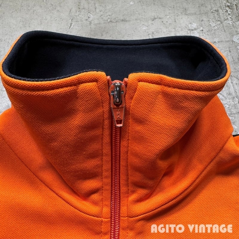 70年代のadidasトラックトップジャケットです。デサント社がライセンス契約で販売していた西ドイツ時代のアイテムです。人気の高いオレンジ×ブラックの個体です。ジッパーはYKK、ポケットが付くモデルです。トレフォイルロゴのパッチが左胸に付きます。袖にはラインは入らず、胸元に3本ラインが入ります。細かな擦れはございますが目立つ汚れやダメージは無くグッドコンディションです。SIZE3表記で、メンズのM相当でしょうか。男女共に着用しやすいサイズ感だと思います。adidasのトラックトップがお好きな方は是非この機会にいかがでしょうか。