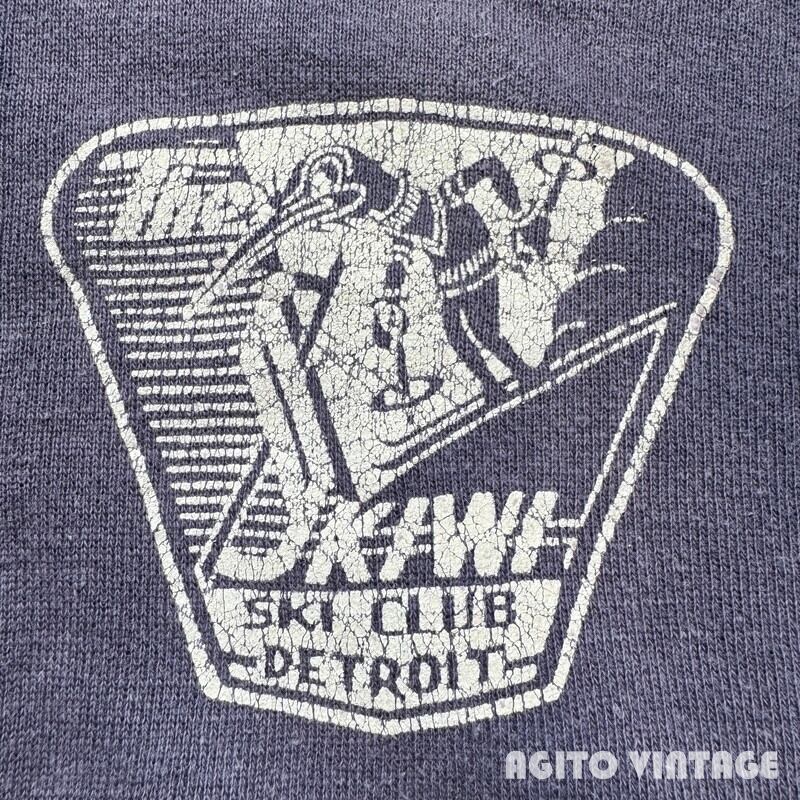50's~60's Unknown ハーフジップスウェットシャツ The SKIWI SKI CLUB DETROIT フェード ナス紺 FALCON ピンロックジッパー XL相当 希少 ヴィンテージ BA-2643 RM3062H