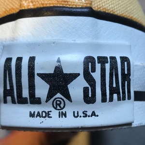 CONVERSE コンバース オールースターLOWのBANANA(バナナ)カラーのデッドストックです。通常のイエローより淡い色合いがとても印象的です。サイドに保管によるシミがございます。サイズもUS8とゴールデンサイズですので、かなり希少な1足です。MADE IN USA。箱付き(箱に破れ有ります)