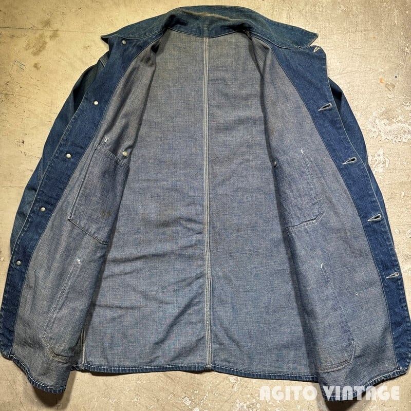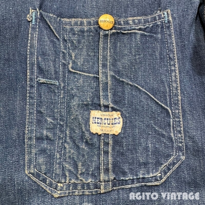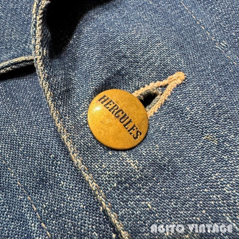 40's~50's HERCULES ヘラクレス デニムカバーオール チョアコート ワークジャケット ボタン裏2プロング 濃いめ Sears ストアブランド L~XL相当 希少 ヴィンテージ BA-2684 RM3105H