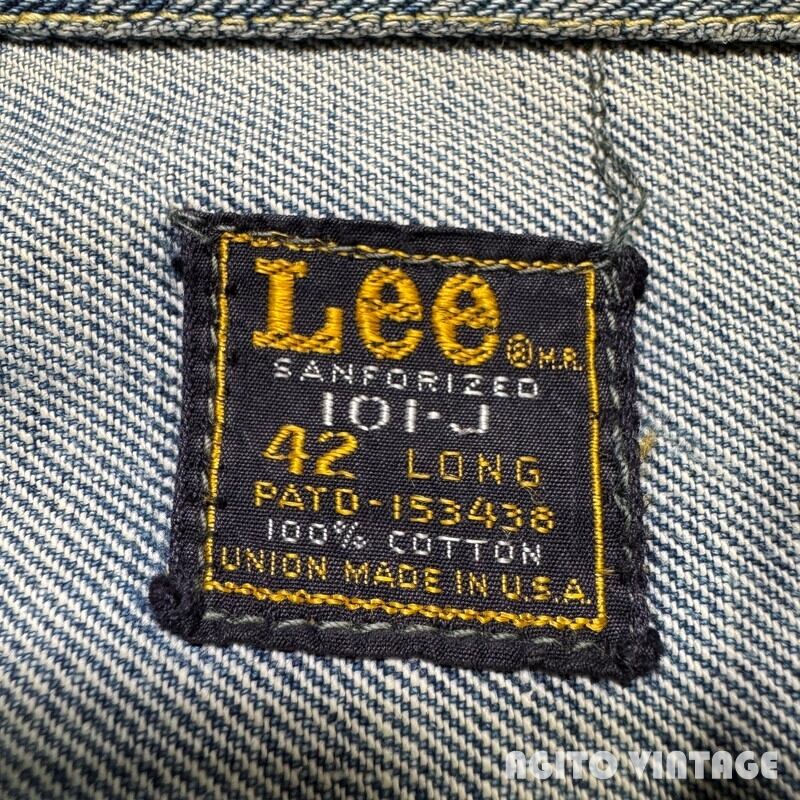 ~70's Lee 101-J リー デニムジャケット 黒タグ ユニオンチケット ドット刻印 MR有り 42LONG USA製 希少 ヴィンテージ BA-2692 RM3113H