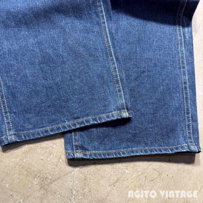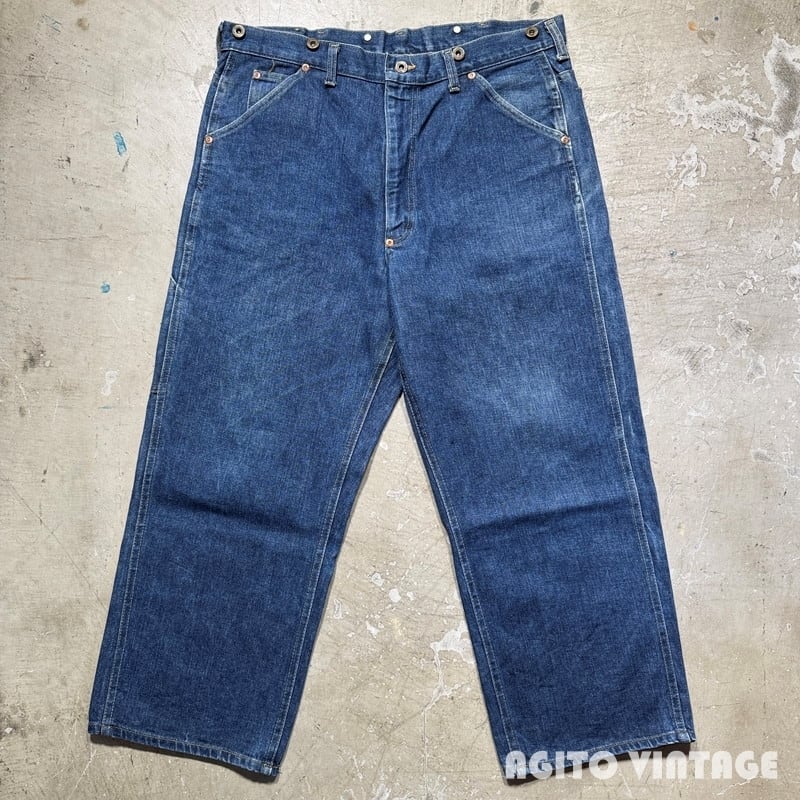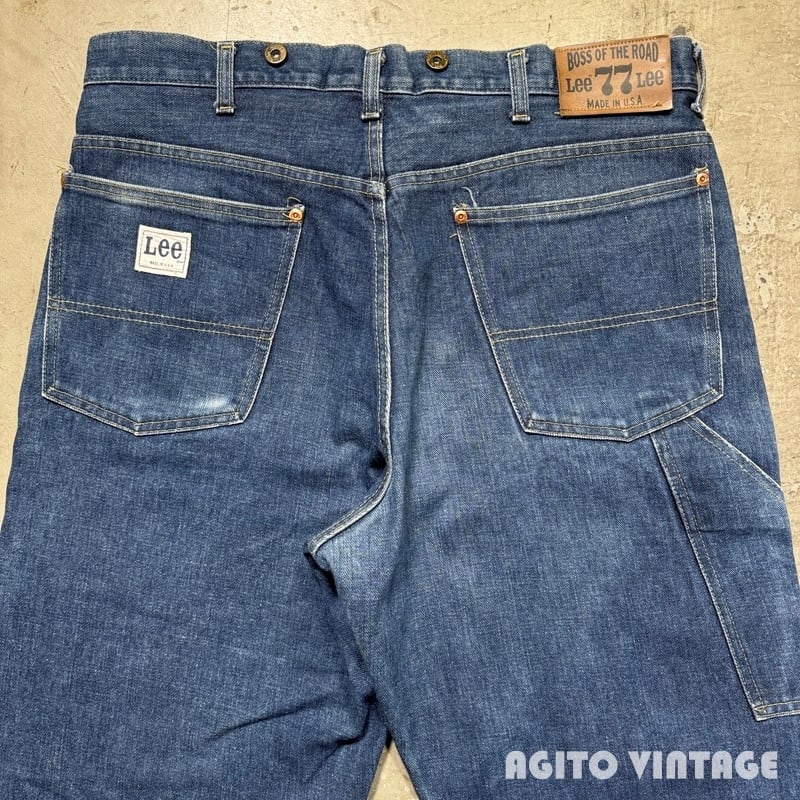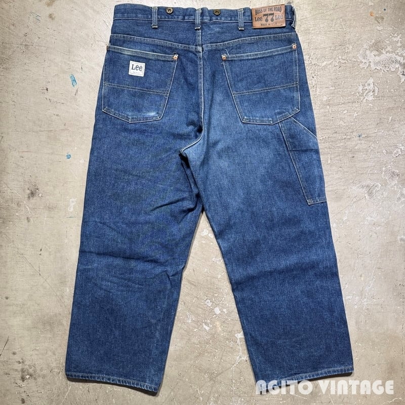 70年代頃のLee BOSS OF THE ROAD デニムロガーパンツです。Leeが1940年代後半に買収したハイマン社のブランドであるBOSS OF THE ROADのロガーパンツをLeeが70年代頃に製造したモデルです。パッチにある77はジッパーフライモデルを指しています。ご紹介するこちらは色残りは5~6割程で、各部細かな擦れ等はございますがダメージ等無く生地もしっかりとしたグッドコンディションと言える1本です。唯一パッチの下部ステッチが少し解れています。フロントはSCOVILLのカムロックジッパーが使用されています。ウエストは表記通りW36でゆったりとしたストレートシルエットです。レングスがやや短めではありますが、170cm位までの方ですと良い塩梅で穿いていただけるかと思います。一般的なペインターパンツに比べしっかりとした生地感なのでガンガン気にせず穿いて経年変化を是非楽しまれてはいかがでしょうか。