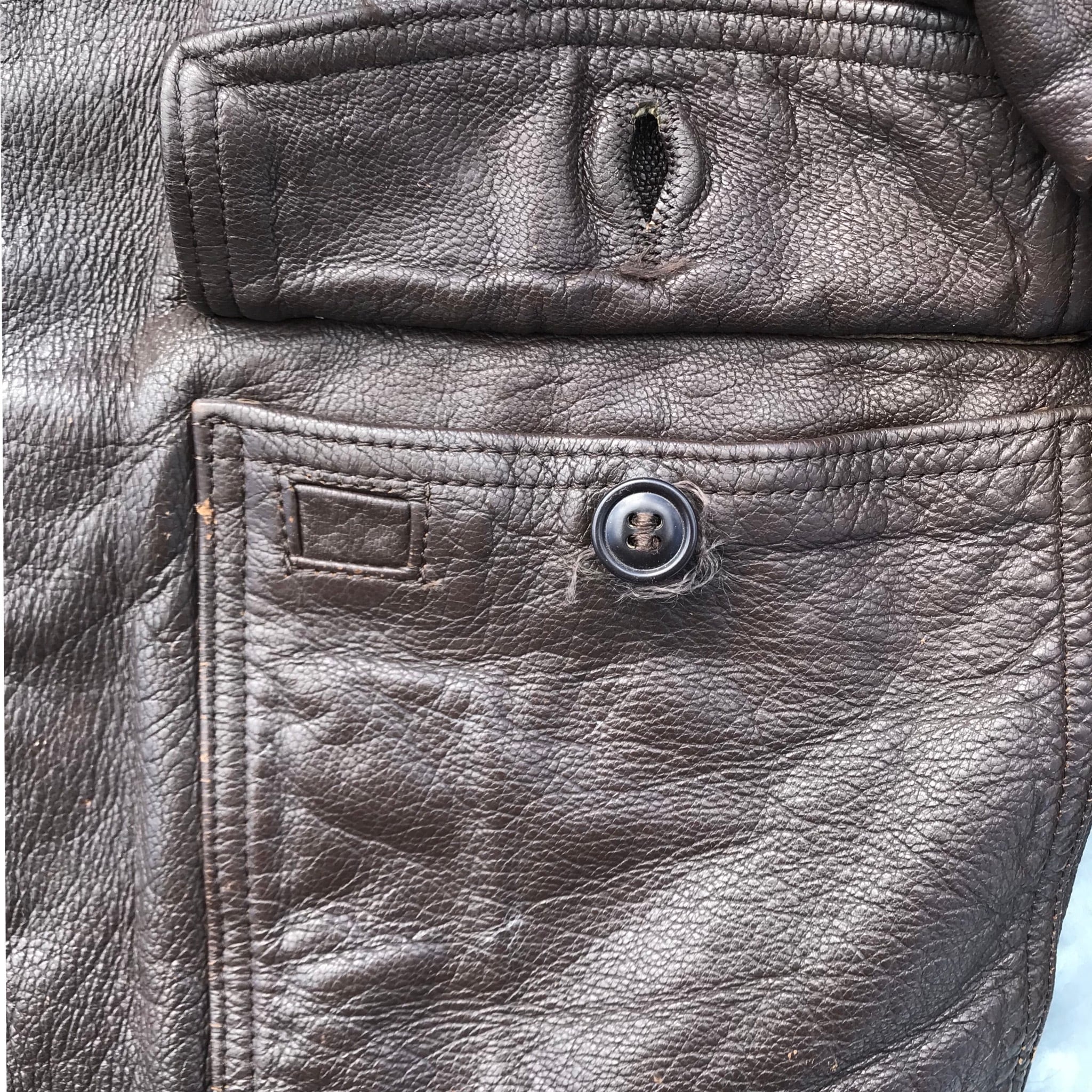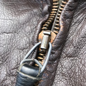 60'sのG-1フライトジャケットです。MIL-J-7323C、RALPH EDWARDS SPTSWEAR社製。CONMERジッパー採用、ラベルの文字が消えかかっていますので、詳しくはわかりませんが、64年前後のコントラクトと思われます。前立てにはUSNのパンチングがございます。リアルムートンは抜けもなく非常に綺麗ですが、全体にダメージがございますので、状態特価とさせていただきます。