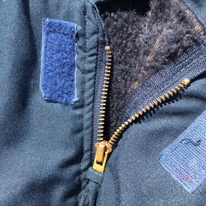 90'sのU.S.NAVY アラミドデッキジャケットです。N-1、A-2デッキジャケットの後継モデルで、難燃繊維のアラミドが採用されています。ネイビーカラーも特徴で、フロントはマジックテープとジッパー仕様となります。裏ボアの裾あたりにボア抜けがございますがその他はダメージなどなく綺麗です。背面にはナンバリングのステンシルが入ります。近年注目され価格が徐々に高騰傾向にありますので、ステンシル入りでこの価格はなかなか出ません。お探しの方は是非!
